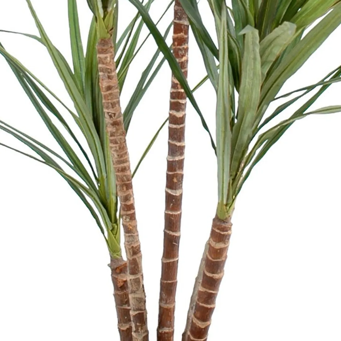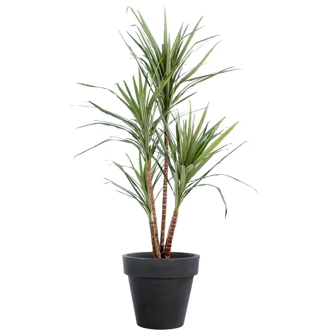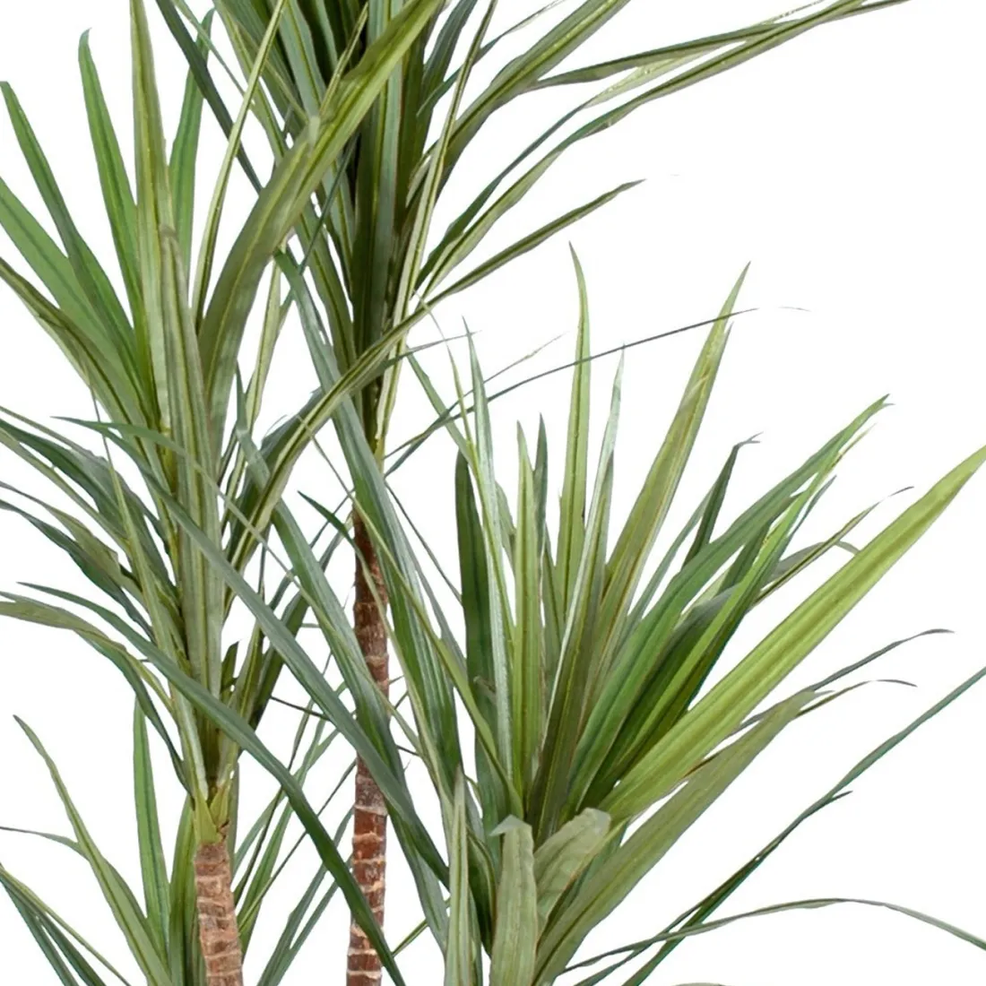 Le dracaena, aussi connu sous le nom de dragonnier de Madagascar, est la plante verte d’intérieur par excellence. Les dragonniers se caractérisent par leurs longues feuilles vertes, parfois striées de rayures rouges, brunes, blanches ou jaunes, qui poussent aux extrémités de tiges. Ce dracena artificiel est proposé en deux tailles 110 et 160 cm de hauteur