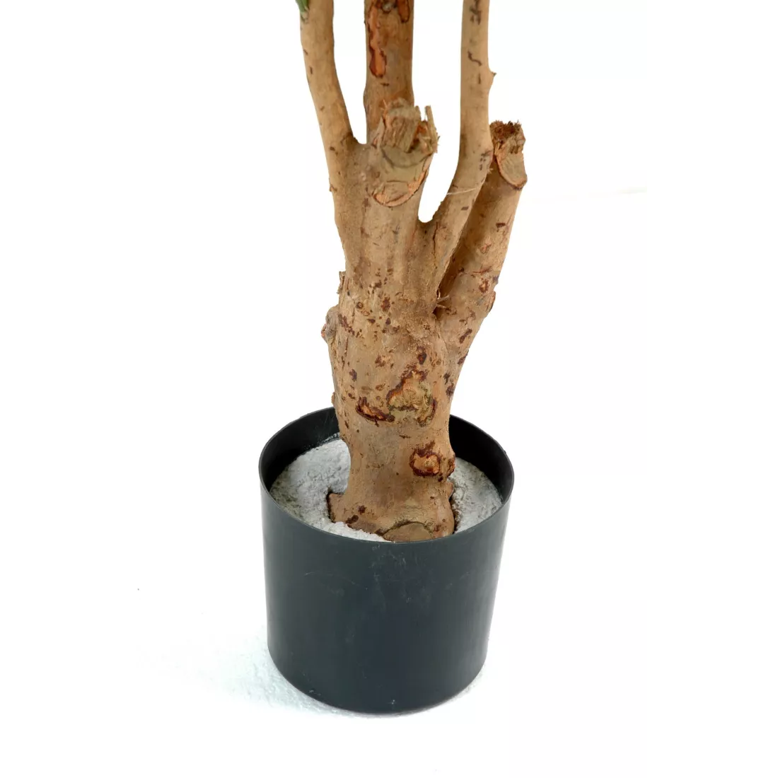 Ficus artificiel est composé de troncs en bois naturel et d'un feuillage en tergal, soit en vert (trois tons de vert) soit panaché (vert/crème), décliné en deux dimensions de 180 et 210 cm de hauteur. Livré dans un pot PVC (support de plantation) plantes artificielles
