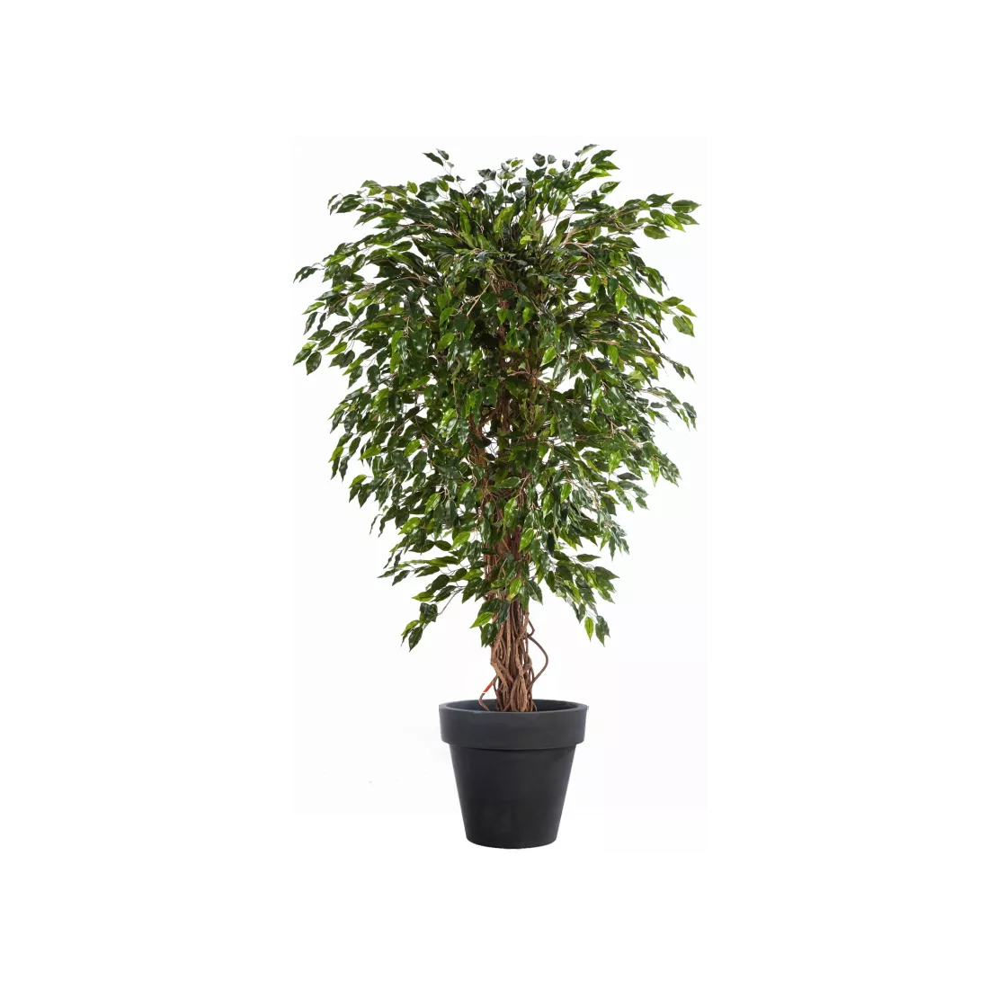 Ce ficus artificiel Hawaï liane est composé d'un tronc en bois naturel multi-troncs en bois,lianes entremêlées et d'un feuillage vert ou vert/crème en tergal. Un vaste choix de déclinaisons est proposé pour cet arbre artificiel, allant de 120 à 210 cm de hauteur. livré dans un support plastique (pot PVC) (plantes artificielles )