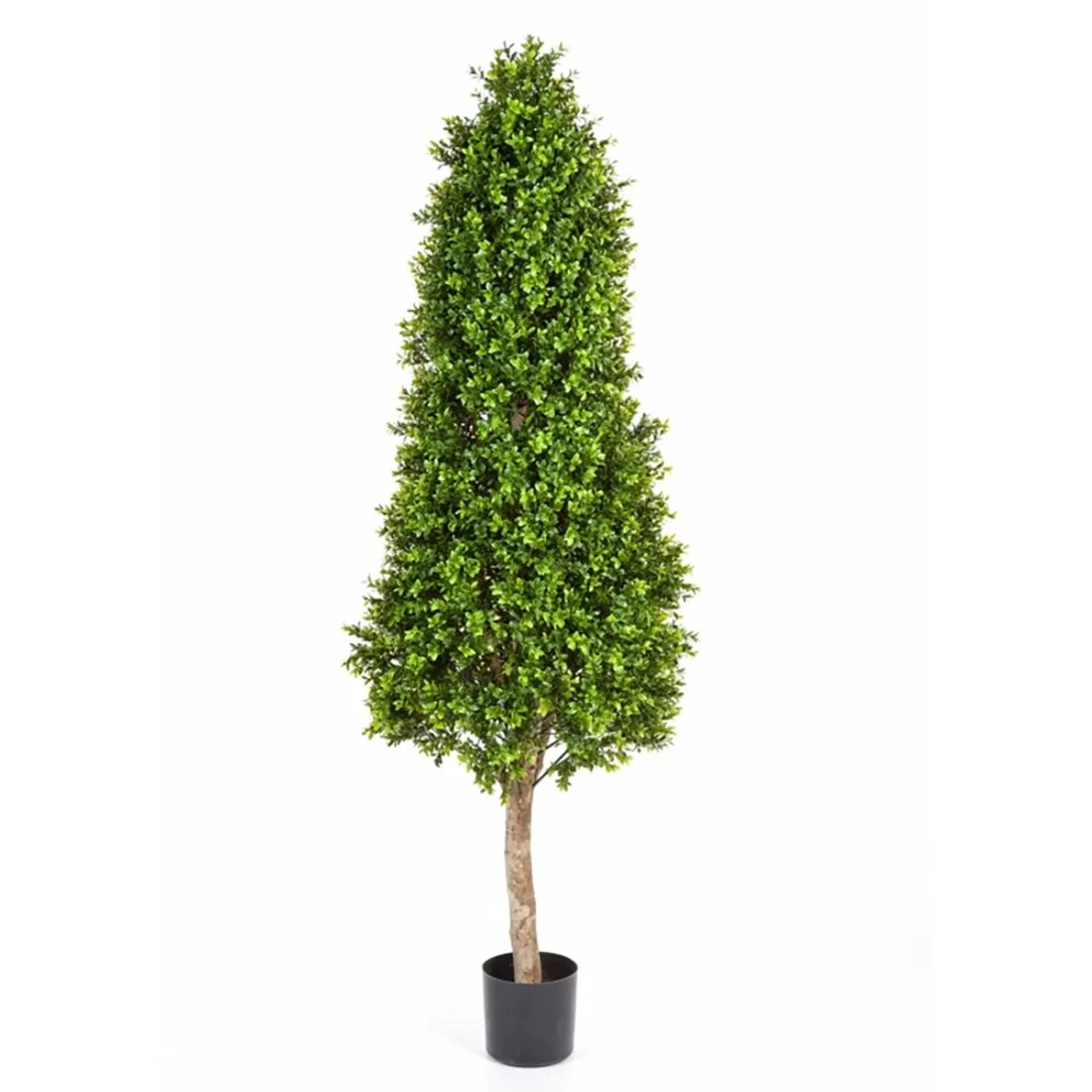 Convient pour l'extérieur . buis artificiel spirale, il dispose d'un tronc en bois, feuillage en polyéthylène, plastique. Se décline en deux dimensions 130 et 160 cm de hauteur. Livré dans un support de plantation, pot plastique. Feuillage dense. ( plantes artificielles )