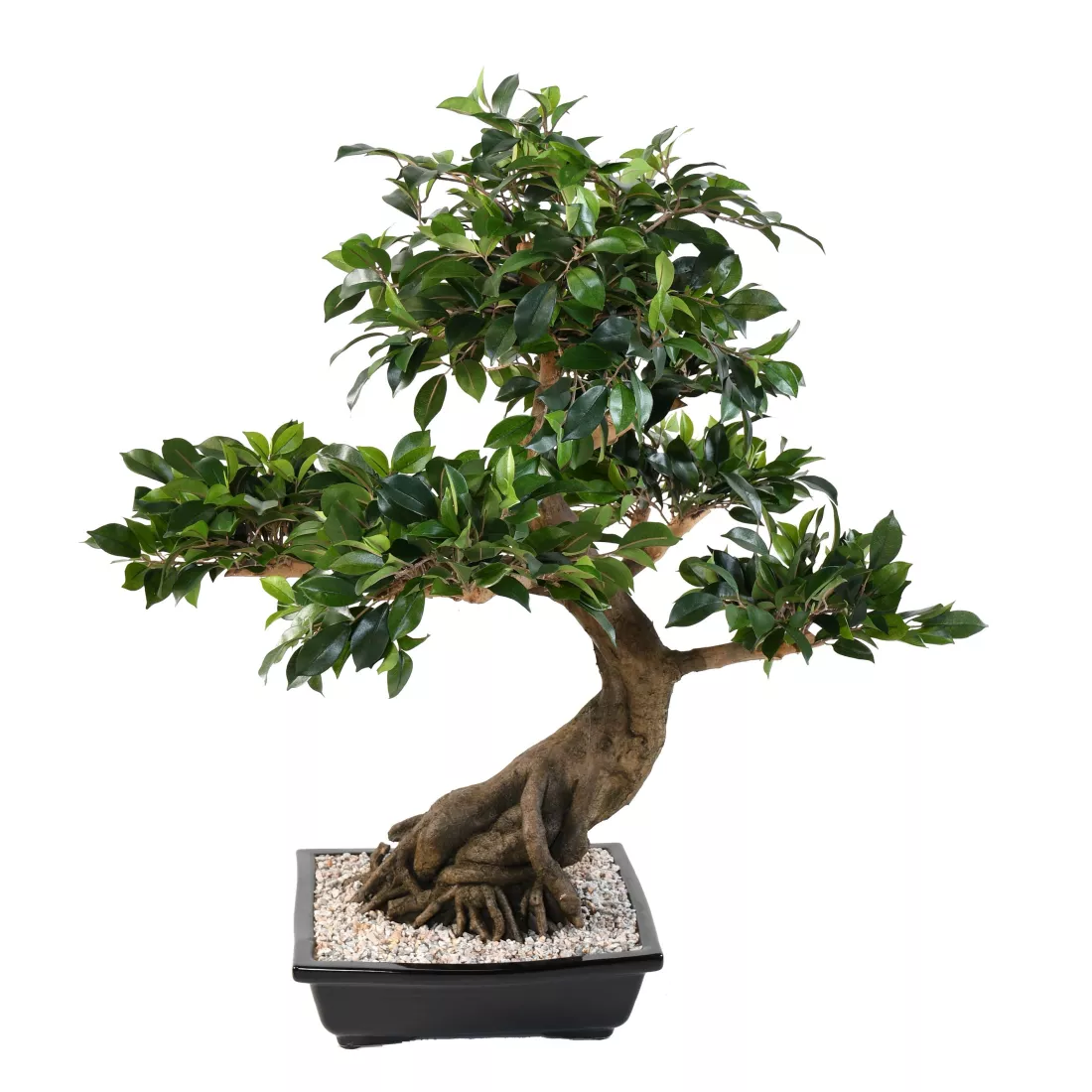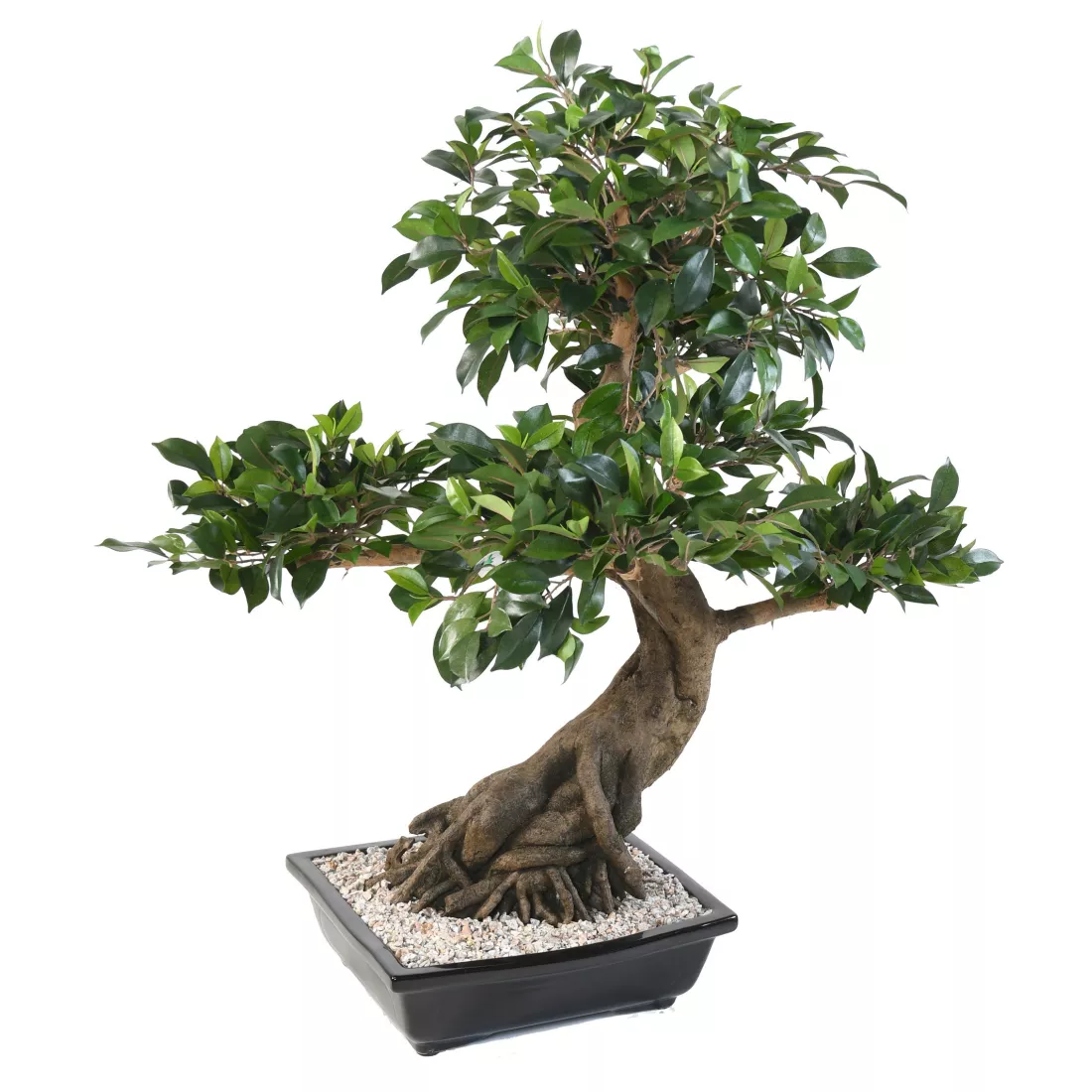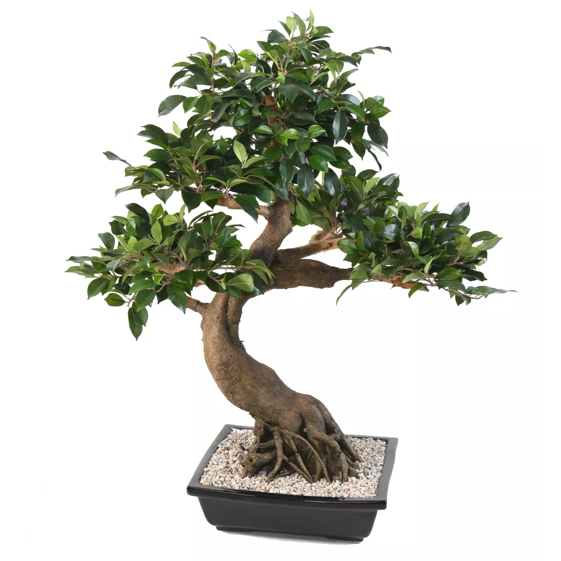 Ce Bonsaï artificiel ficus est composé d'un tronc en fibre de verre et d'un feuillage vert en Polyester, tissu. Proposé en 80 cm de hauteur. Livré dans une coupe noire comme sur la photo.( plantes artificielles ) surfaçage gravillon collé
