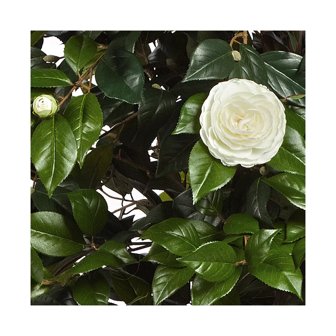 Ce Camélia artificielle est réalisé à partir de bois naturel, et d'un feuillage en tissu: Tergal. Très réaliste grâce à son tronc en bois naturel, son feuillage et ses fleurs en tergal, il s'intégrera parfaitement dans votre décoration intérieur. Cette plante artificielle est vendue dans un support plastique (pot PVC noir), la taille indiquée est comprise de la base du pot jusqu'au sommet de la plante