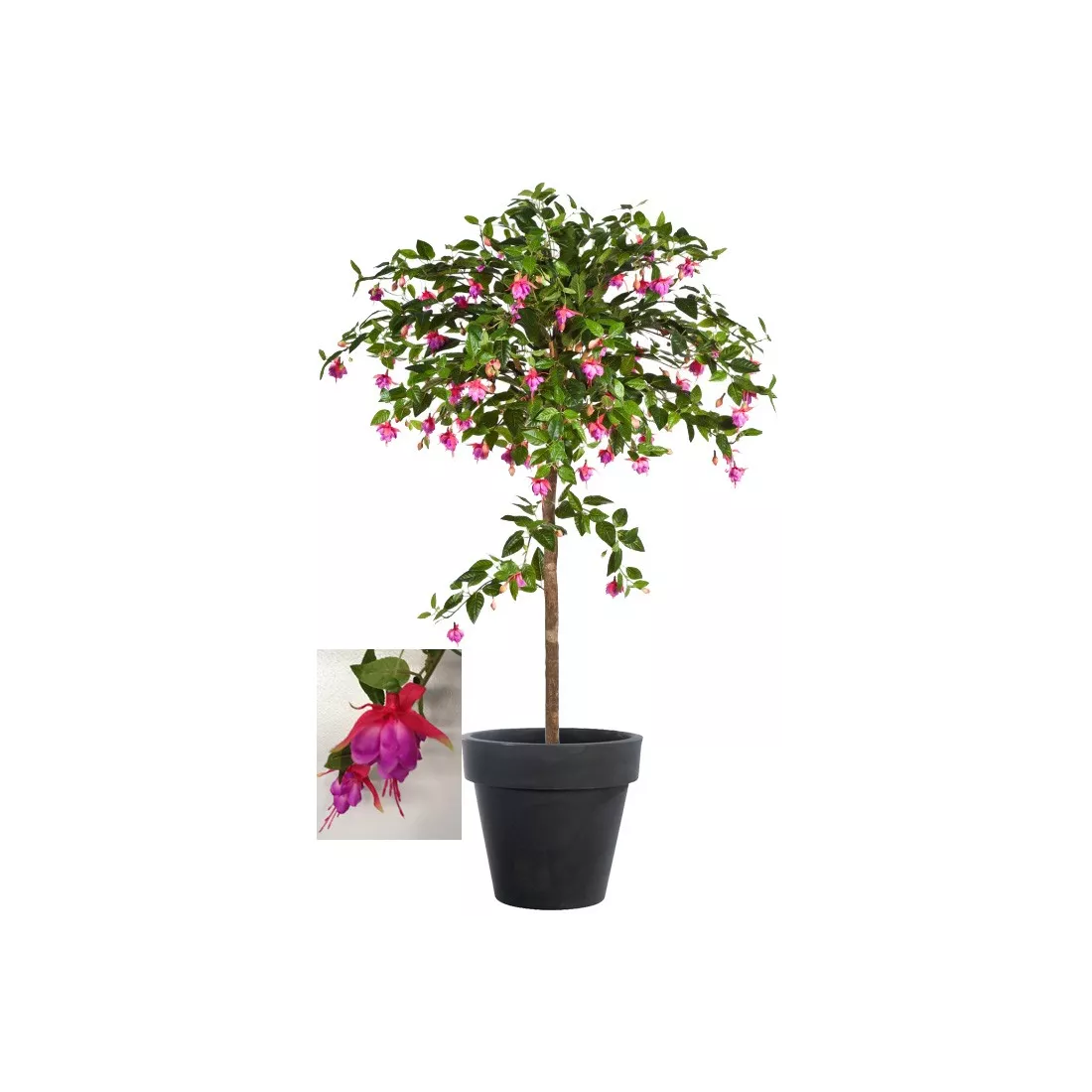 Ce bougainvillée artificielle est réalisé à partir de bois naturelles, et d'un feuillage en tissu: Tergal. Cette plante artificielle est vendue dans un support plastique (pot PVC noir), la taille indiquée est comprise de la base du pot jusqu'au sommet de la plante