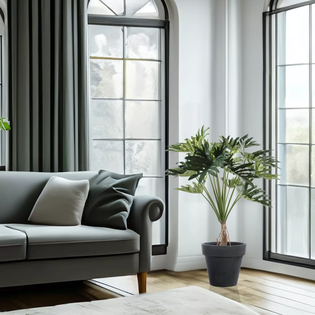 Le Philodendron artificiel selloum est une magnifique plante tropicale aux larges feuilles découpées. Plante artificielle composée d'un tronc en fibre de verre et d'un feuillage tissu (tergal), 15 tiges. Livré dans un support plastique ( plantes artificielles )