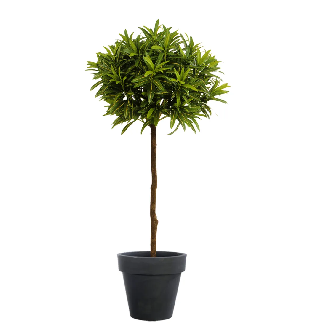 Très réaliste grâce à son tronc en bois naturel.Originaire d’Inde, de Malaisie et des îles de l’Est du Pacifique, cette boule artificielle sur tronc est très décoratif, appartient au genre codiaeum. Cette plante factice est vendue dans un pot PVC (support de plantation), la taille indiquée est comprise de la base du pot jusqu'au sommet de la plante.
