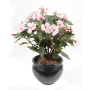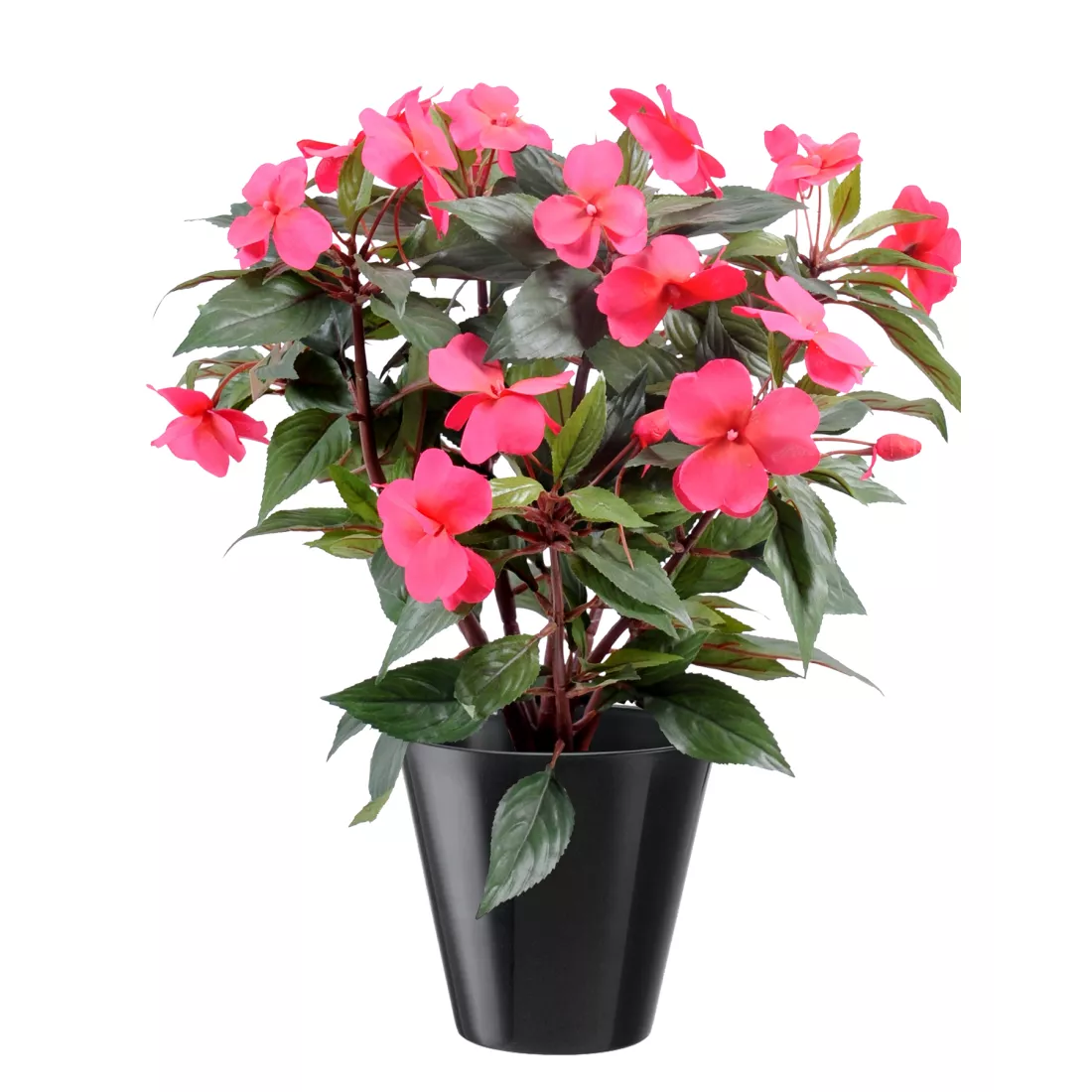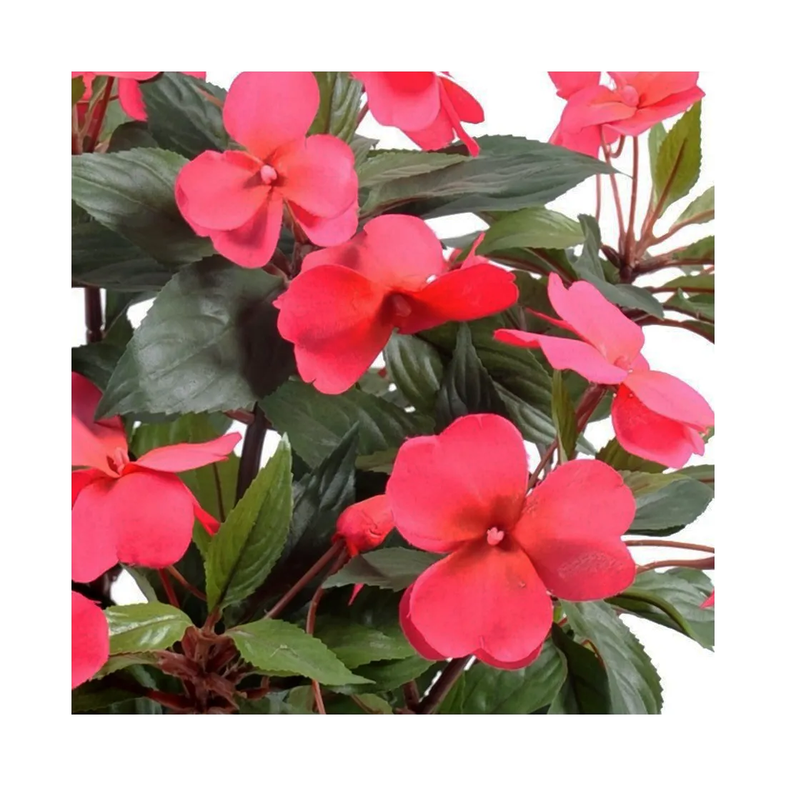 L’Impatiens, surnommée également Balsamine, est une plante herbacée originaire d’Amérique tropicale et de l’Est de l’Afrique qui appartient à la famille des Balsaminacées. Cette plante artificielle fleurie est garnie de belles fleurs synthétiques en tissu dont les pétales ont la forme caractéristique d’un joli cœur. Le feuillage quant à lui est composé de petites feuilles artificielles dentelées et pointues, d’un beau vert sombre qui contraste d’avec les fleurs et les tiges. C’est une reproduction fidèle de l’originale qu’il sera bien difficile de distinguer du naturel une fois travaillée à l’aide de l’armature métallique présente dans les tiges, si ce n’est par le fait que celle-ci conservera sa beauté sans entretien ni arrosage