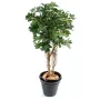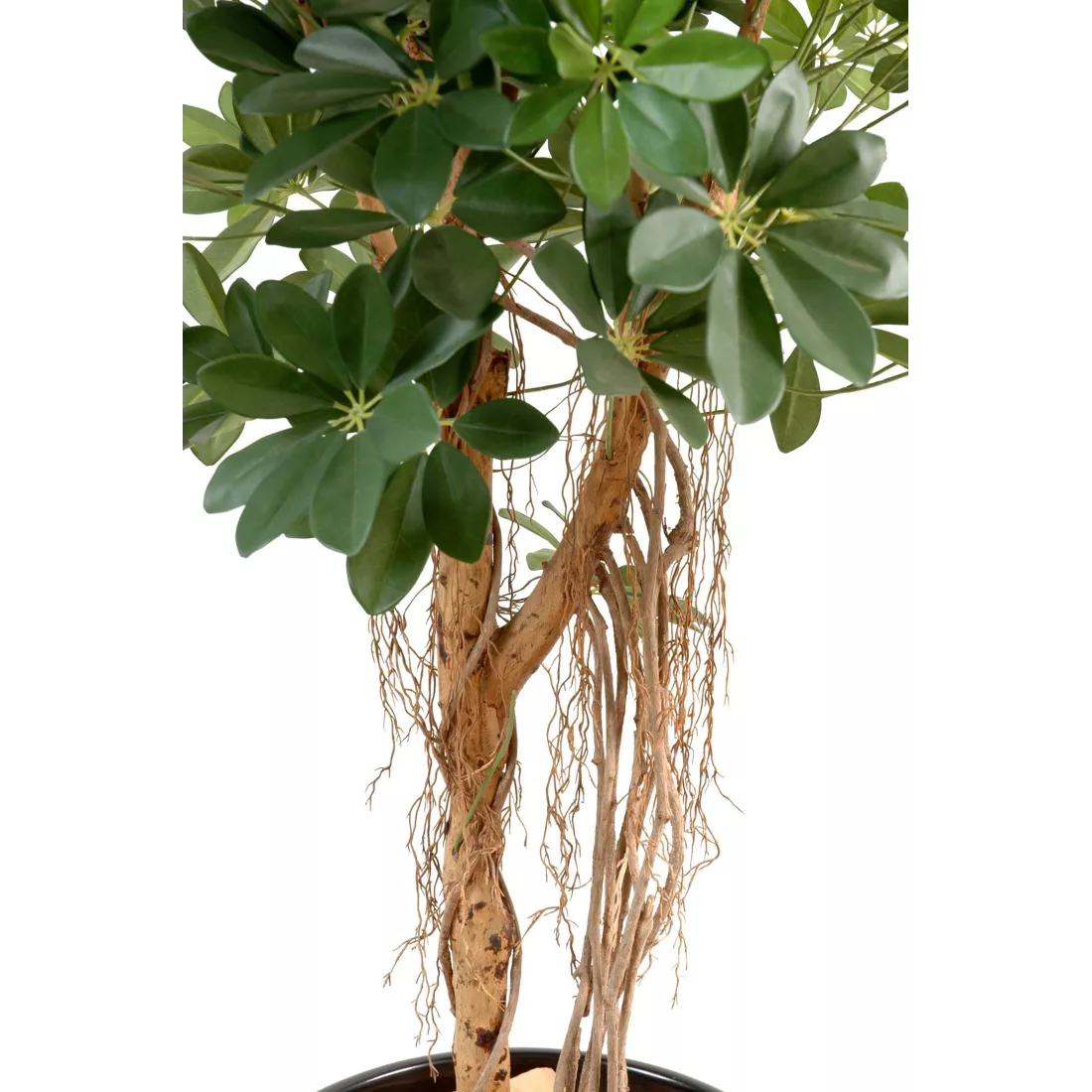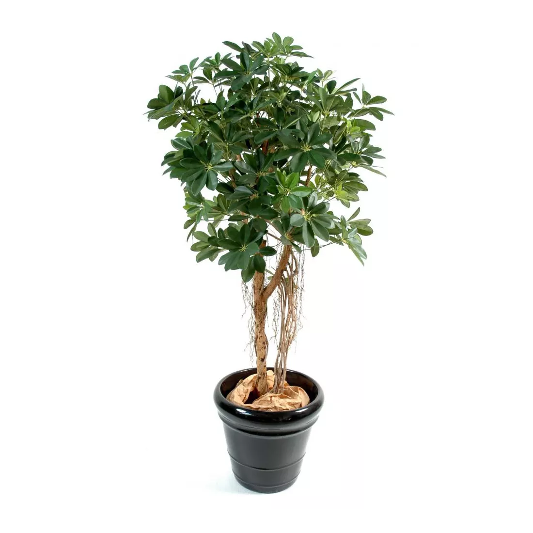 Ce Schefflera artificiel parasol est une très belle réalisation, ce faux arbre tropical amène sa touche d'exotisme, à votre intérieur ses racines aériennes peu vu dans le monde artificiel apporte son originalité. Cet arbre factice disposé dans un pot rond ou carré décorera superbement une entrée, une pièce à vivre, une salle de restaurant... Cette fausse plante par son feuillage vert ou panaché attirera les regards. Associé dans une décoration végétale avec des bambous artificiels ou avec un Beaucarnéa