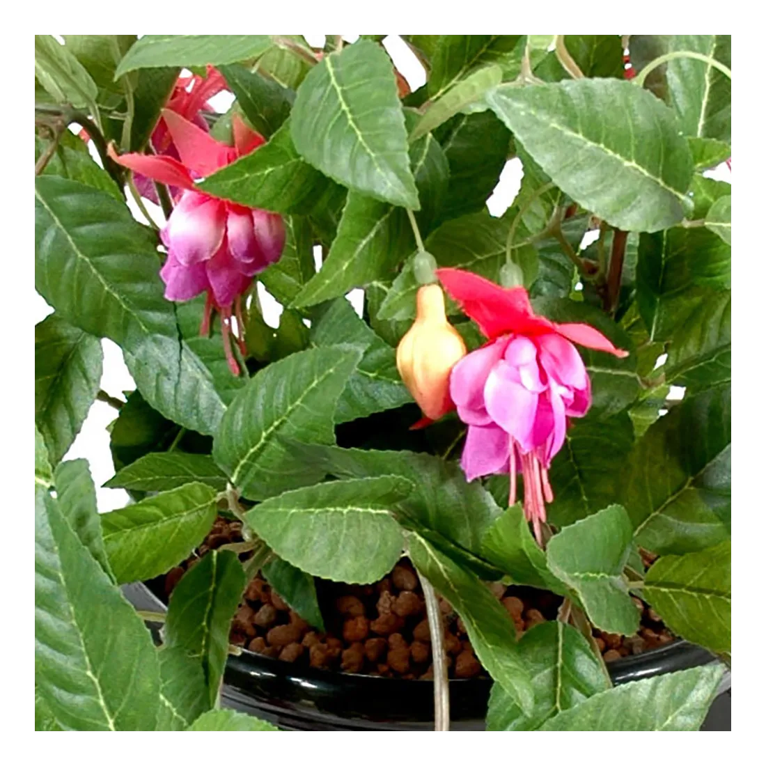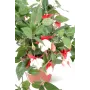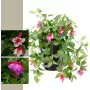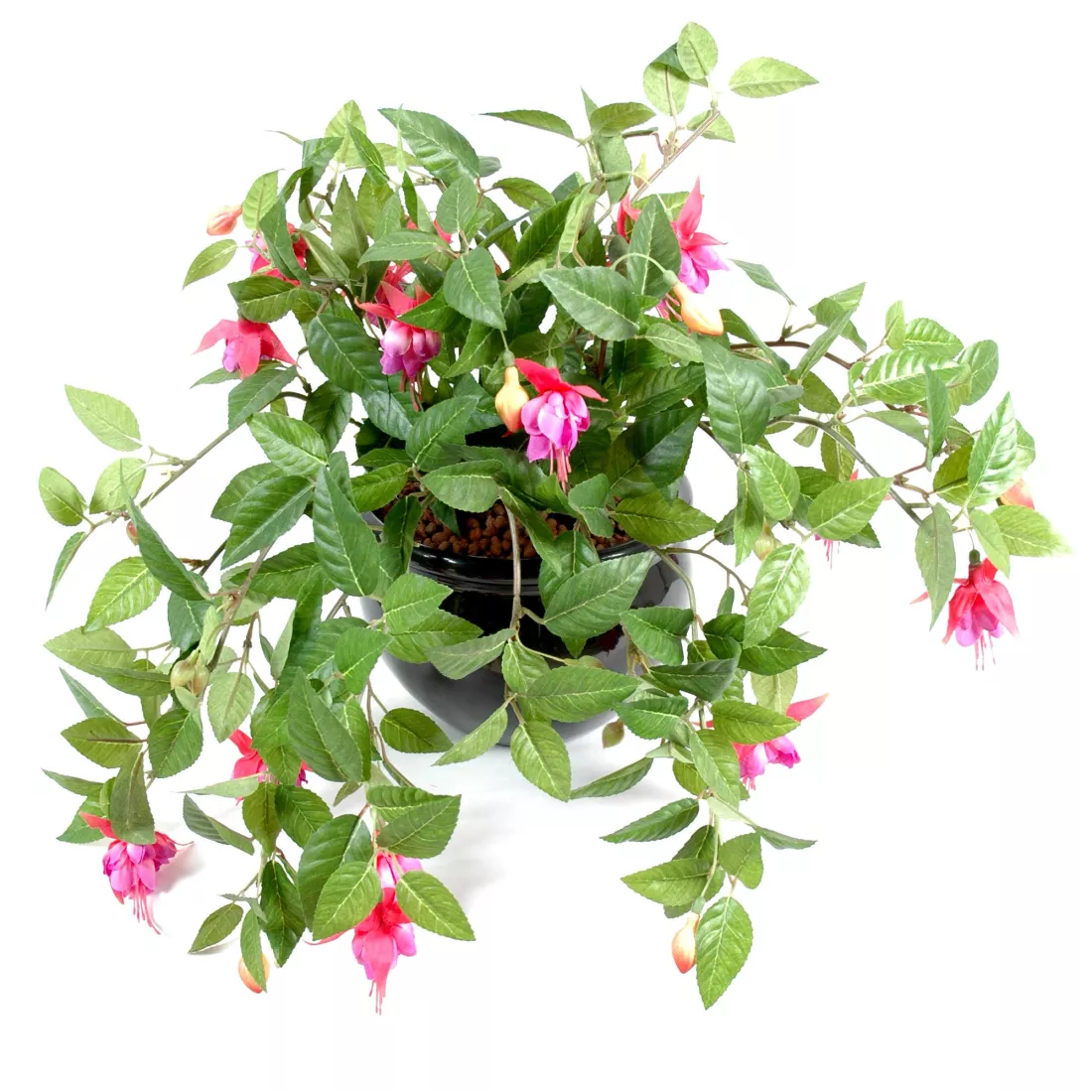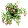 Les fuchsias sont des arbrisseaux originaires d’Amérique Latine et de Nouvelle-Zélande très appréciés des colibris, appartenant à la famille des Onagracées, généralement cultivés comme plantes d’ornement pour leurs magnifiques fleurs bicolores et très décoratives. Cette belle plante synthétique ornementale possède un feuillage artificiel verdoyant agrémenté de fleurs artificielles raffinées en tissu en forme de clochettes et vivement colorées. C’est une fausse chute décorative haut de gamme stupéfiante de réalisme qu’il sera aisé de travailler à l’aide de ses tiges métalliques recouvertes de plastique marron/vert afin d’adapter sa forme à vos envies. Idéale si vous n’avez pas la main verte, cette plante artificielle fleurie vous apportera de la couleur durant de longues années sans nécessiter aucun autre entretien qu’un petit lavage à l’eau savonneuse ponctuellement !