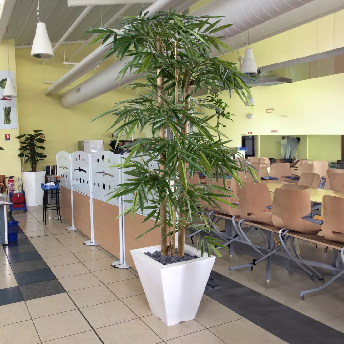 bambou artificiel new grosses cannes est composé de cannes de bambou naturel et d'un feuillage vert en tergal de 15 cm de longueur par 2.5 cm de largeur pour les plus grandes. Un vaste choix de déclinaisons est proposé pour cet arbre artificiel, allant de 150 à 300 cm de hauteur. Livré dans un support plastique ( plantes artificielles )
