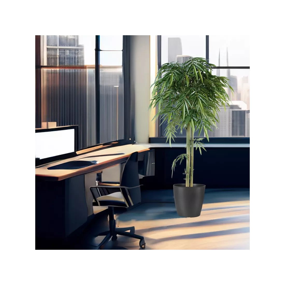 Ce bambou artificiel new tête est composé de 3 véritables cannes de bambou de 180 cm de hauteur pour 60 cm d'envergure, feuillage artificiel tissu Livré dans un support plastique ( plantes artificielles ) feuillage dense