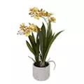 ORCHIDEE Oncidium artificielle coloris jaune et plantée dans un pot en terre cuite peinte. Dimensions: Ht. totale: 47 cm - largeur corolle: 5 à 6 cm - envergure 35 cmMatière des fleurs : tissu polyesterMatière des...