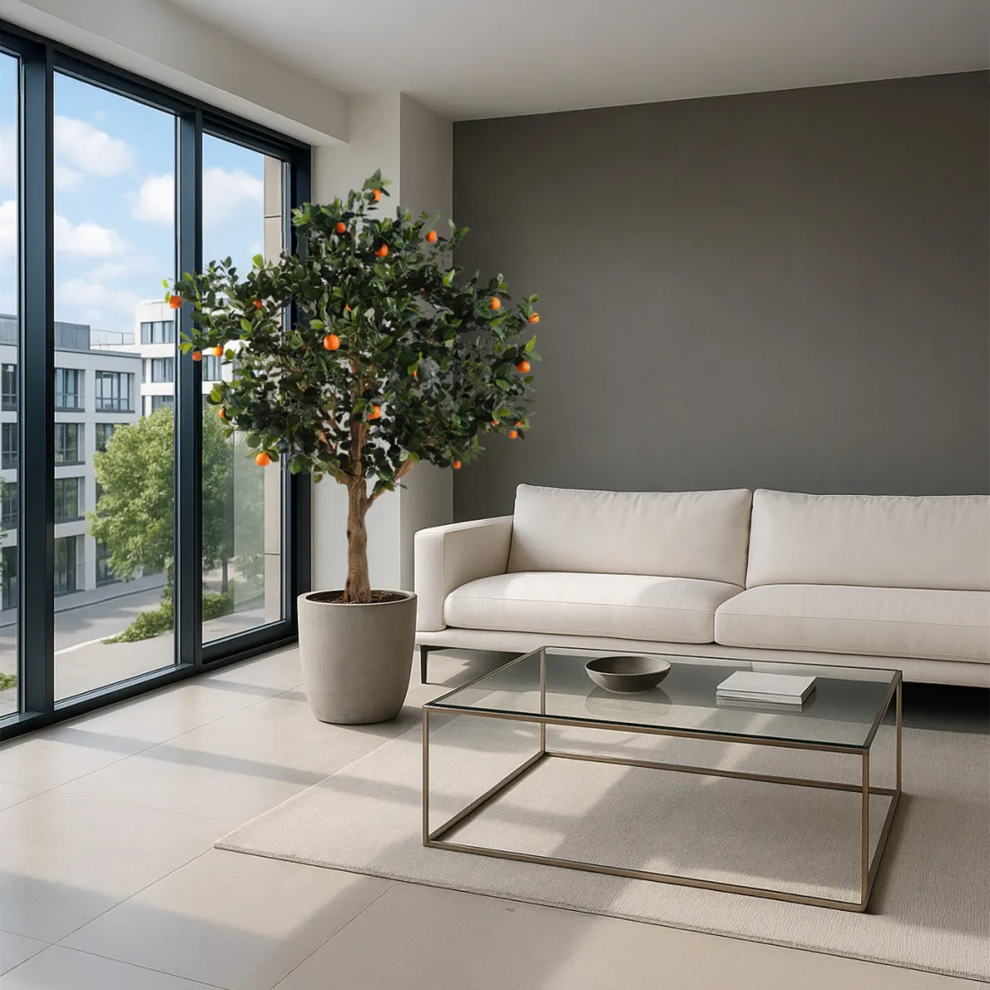 Magnifique oranger qui s'intègre parfaitement à nos intérieurs et halls d'entrée un peu spacieux, en isolé dans un pot avec des cailloux blancs en surfaçage il sera du plus bel effet. Dans un espace végétalisée , un massif vous pourrez l'accompagner de graminées comme des herbes foxtail sans plumeau, ou d'autres orangers artificiels pour recréer une orangeraie dans votre intérieur, ou même encore avec des cactus laissez libre court à votre imagination..