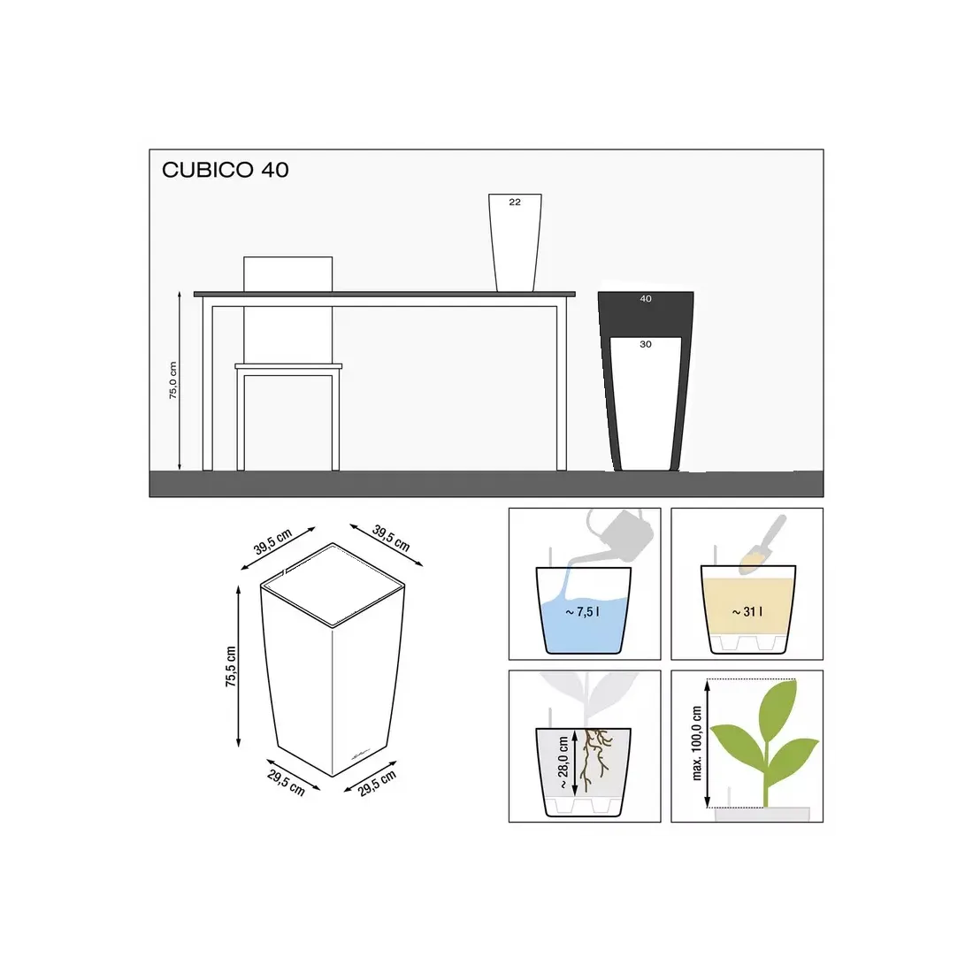 De par sa forme, le Cubico de LECHUZA est un petit chef d'oeuvre. Et grâce à sa ligne épurée, il ressemble davantage à un objet d'art qu'à un simple pot. Pourtant, le CUBICO ne monopolise jamais l'espace d'une pièce. Il se contente de mettre chaque plante parfaitement en scène en rehaussant leur beauté naturelle.