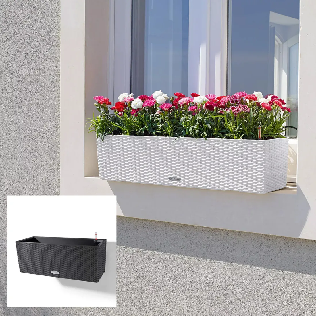 Cottage de LECHUZA avec leur surface structurée présentent tous les avantages propres aux pots LECHUZA : ils sont légers, résistent aux rayons UV et au gel, ainsi qu'aux intempéries