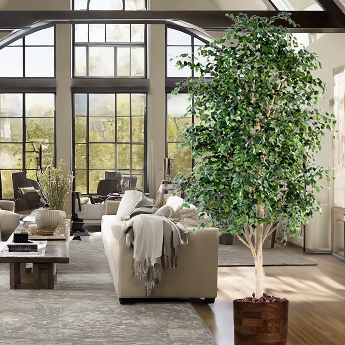 Cet arbre artificiel réplique du bouleau naturel, ses feuilles sont dentelées et triangulaires, déclinées en différents verts afin de coller au plus prêt au naturel. En isolé, rempoté dans un pot il décorera magnifiquement votre intérieur . Associé dans un massif avec d'autres arbres artificiels continentaux comme l'arbre hêtre artificiel ou platane artificiel un véritable décor et apportera à votre décoration un havre de paix.