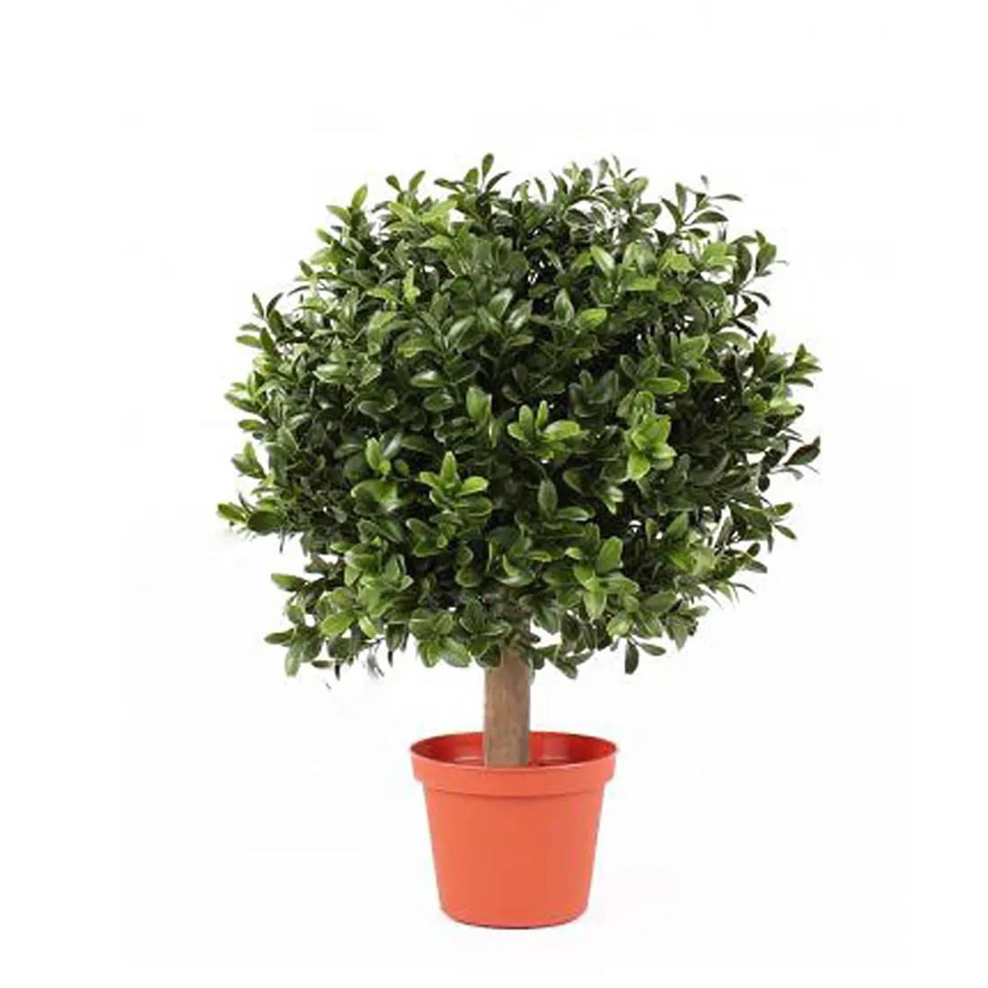 Ce buis artificiel topiaire a un Tronc en bois Ce buis en matière plastique est la topiaire par excellence, souvent utilisée par paire. Livré dans un support plastique Effet non taillé ( plantes artificielles )