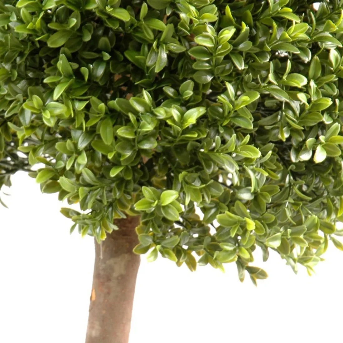 convient pour l'extérieur. Ce buis artificiel sur tronc est composé d'un tronc en bois naturel et d'un feuillage vert en plastique. Un vaste choix de déclinaisons est proposé pour cet arbre artificiel, allant de 110 à 170 cm de hauteur. Livré dans un support plastique ( plantes artificielles )Branches feuillues montées sur tronc en bois. Feuillage dense. Aspect " repousse de printemps ".