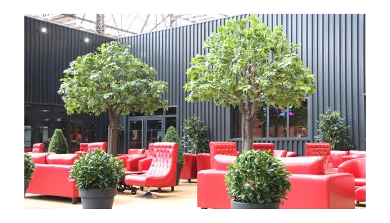 Ce beau Chêne artificiel est constitué d'un tronc en fibre de verre pour une belle imitation du naturel et d'un feuillage vert en tergal. Décliné en deux dimensions 300 et 400 cm de hauteur. livré sur une plaque de fixation ( plantes artificielles )