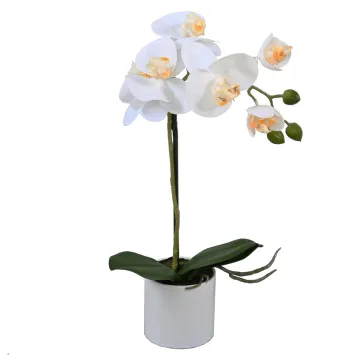 composition orchidée phalaenopsis artificielle, hauteur totale: 39 cm pour une largeur de 20 cm
