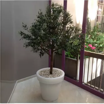 Pensez également à l’envergure de l’arbre. Si vous souhaitez pouvoir passer sous les branches de votre olivier artificiel de grande taille, vous pourrez le placer dans un pot pour augmenter la hauteur sous les branches.
