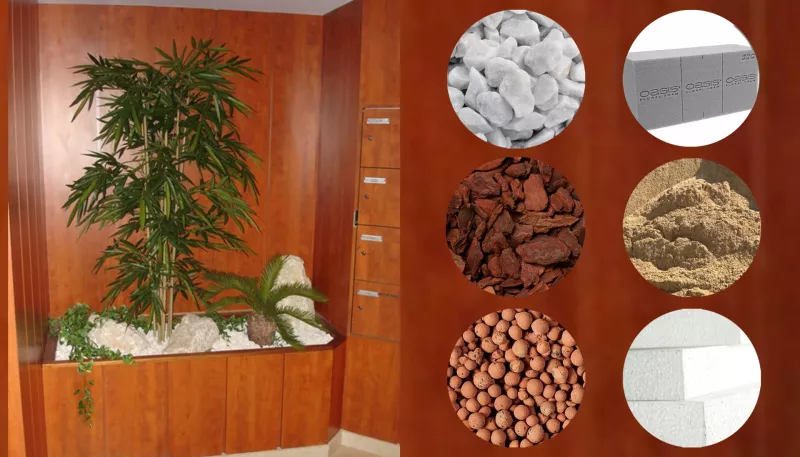 Lorsque vous aurez sélectionné le cache pot ou la jardinière adapté(e) au volume de votre plante artificielle, vous aurez besoin de les remplir avec un support dans l’objectif de bien fixer votre fausse plante ou votre arbre artificiel.