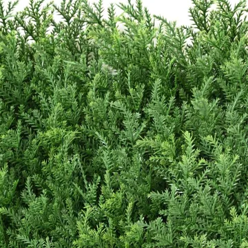 cette plaque végétale artificielle de cyprès est composée de 4 plaques carré souple accrochées entre elle, sa dimension est de 50 cm de coté pour 50 cm de largeur. pour 5 cm d'épaisseur Clipsable avec d'autres. feuillage artificiel en polyéthylène (plastique) .faux feuillage fixé sur un quadrillage en polyéthylène .