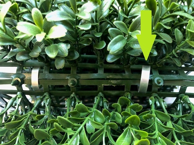 - Concernant les haies complètement opaques comme la haie de cyprès artificiel, il suffit de les encastrer dans la jardinière. Avec ou sans pot, il est toujours prudent d’attacher le mur sur une main courante par exemple. Un fil de fer vert reste invisible dans le feuillage. Deux points d’accroche suffisent pour éviter le basculement de la haie synthétique lorsqu’il y a du vent.