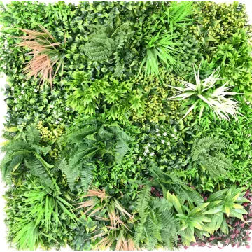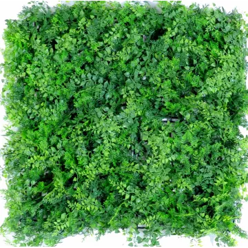 Ce mur végétal artificiel est composé de 4 plaques carrées souples de 25 cm x 25 cm clipsé. Elle mesure au total 50 cm de cotés par 50 cm de largeur. Feuillage artificiel en polyéthylène (plastique)