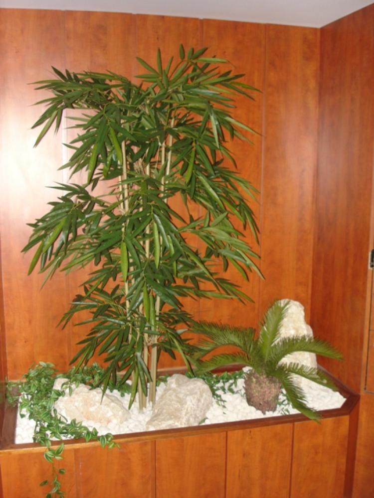 composition du bac : 1 bambou 180 cm ( arbre semi-naturel ), 1 cyccas 65 cm( plante artificielle ), 1 plante rampante.