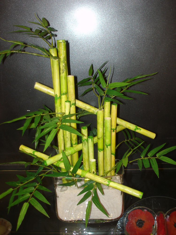 composition bac (photo 1): 1 bambou ( plante artificielle ), 2 croton ( plantes artificielles ), 2 piries( plantes artificielles ), 2 plantes chutes