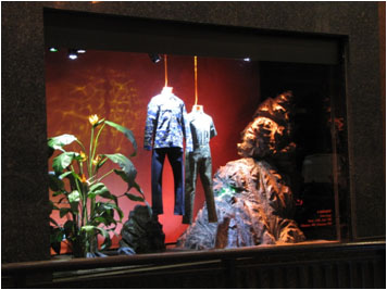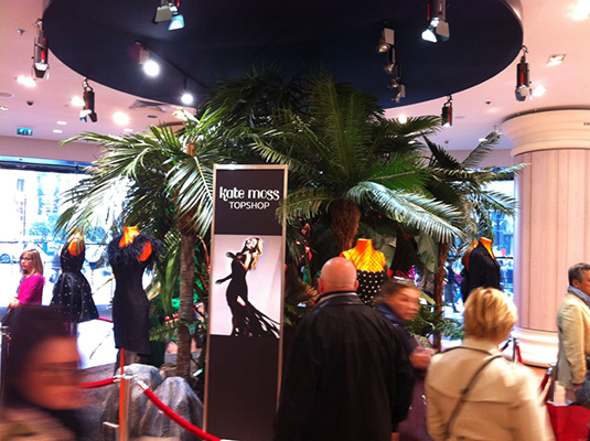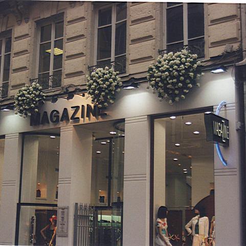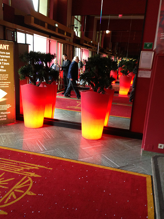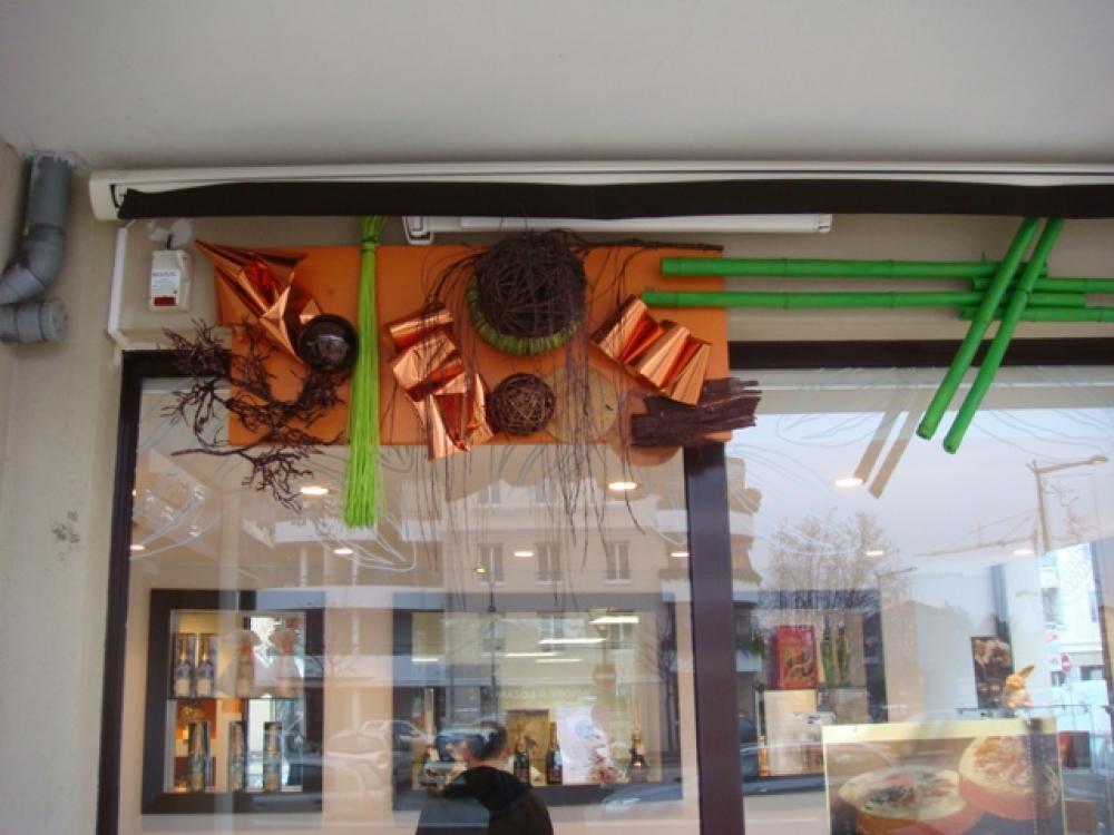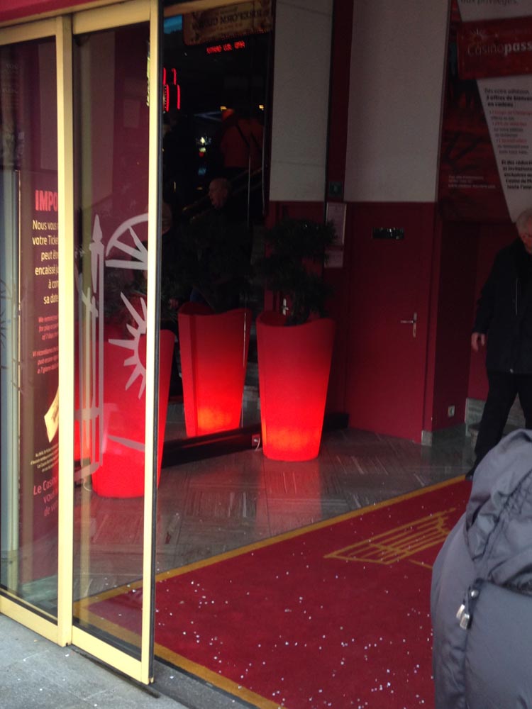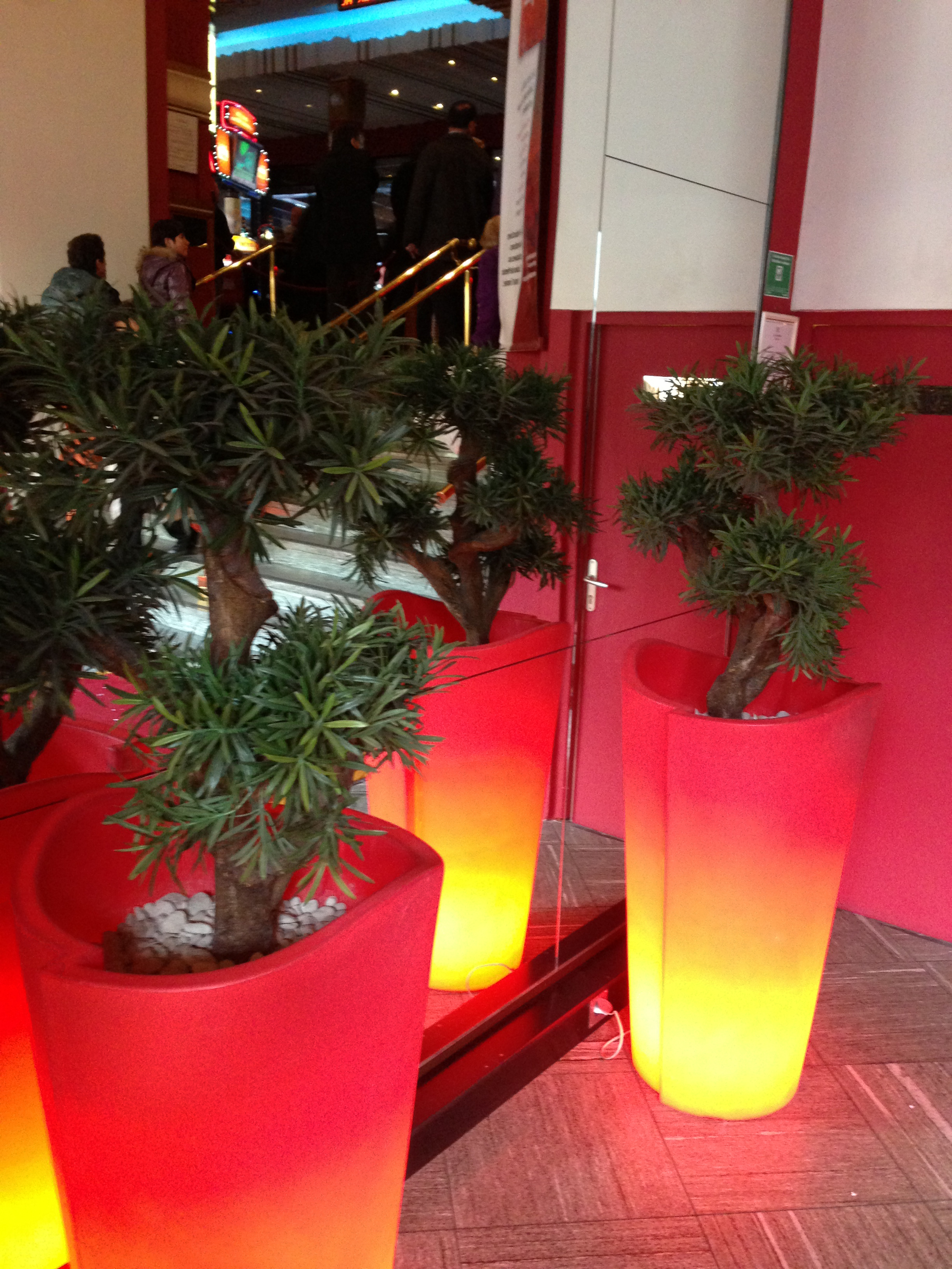 Hall sur les quai de Saone ( Lyon), des palmiers de plus de 3 mètres, des bambous, et autres arbres et plantes artificielles exotiques donnent à cette entrée une touche originale.