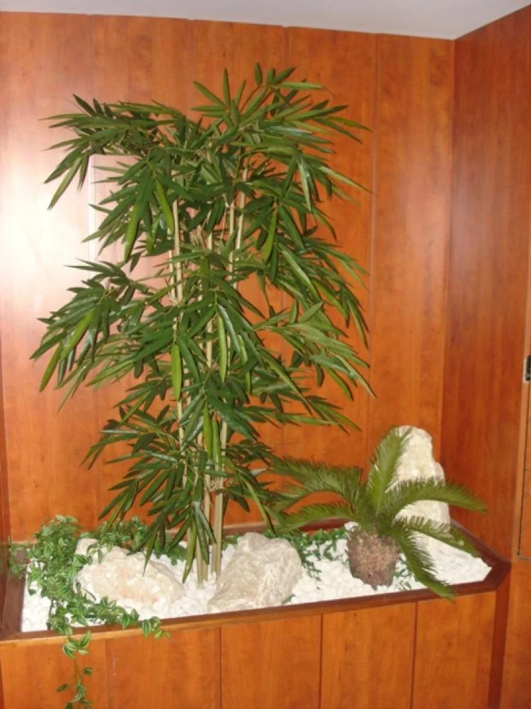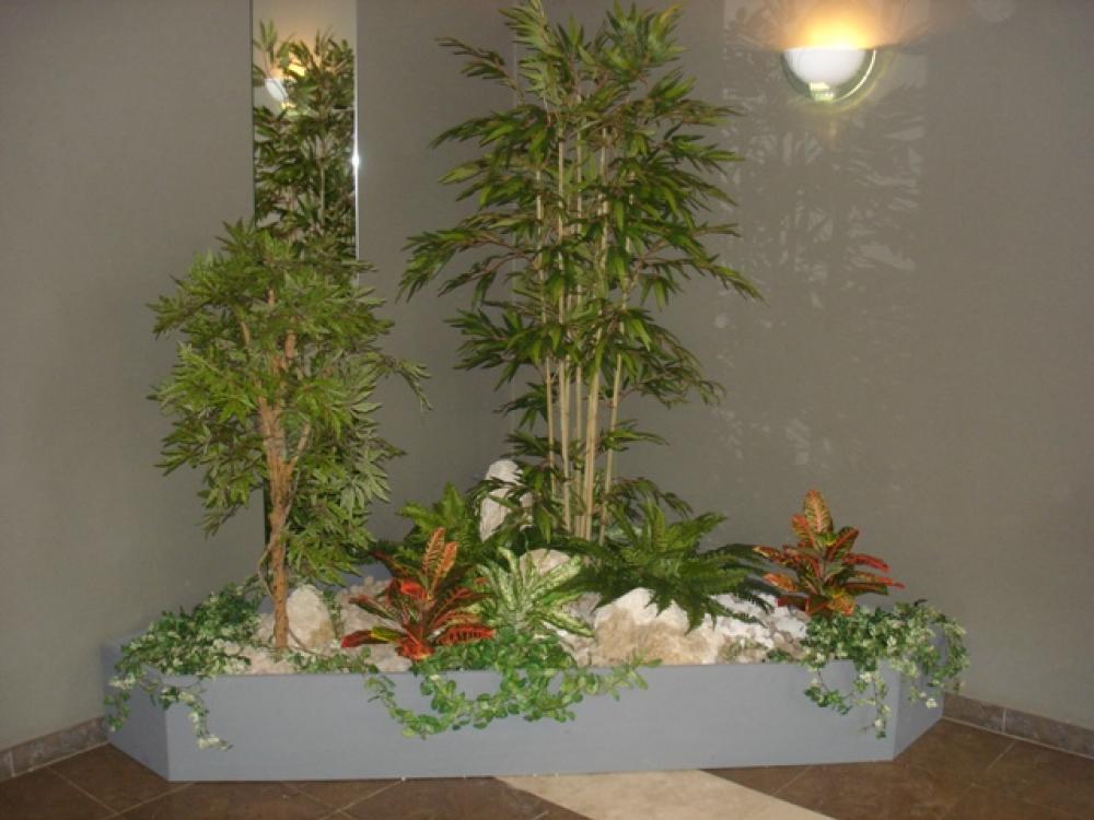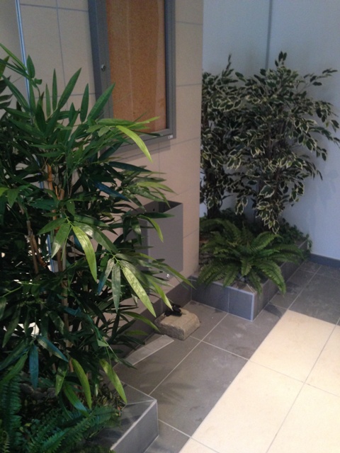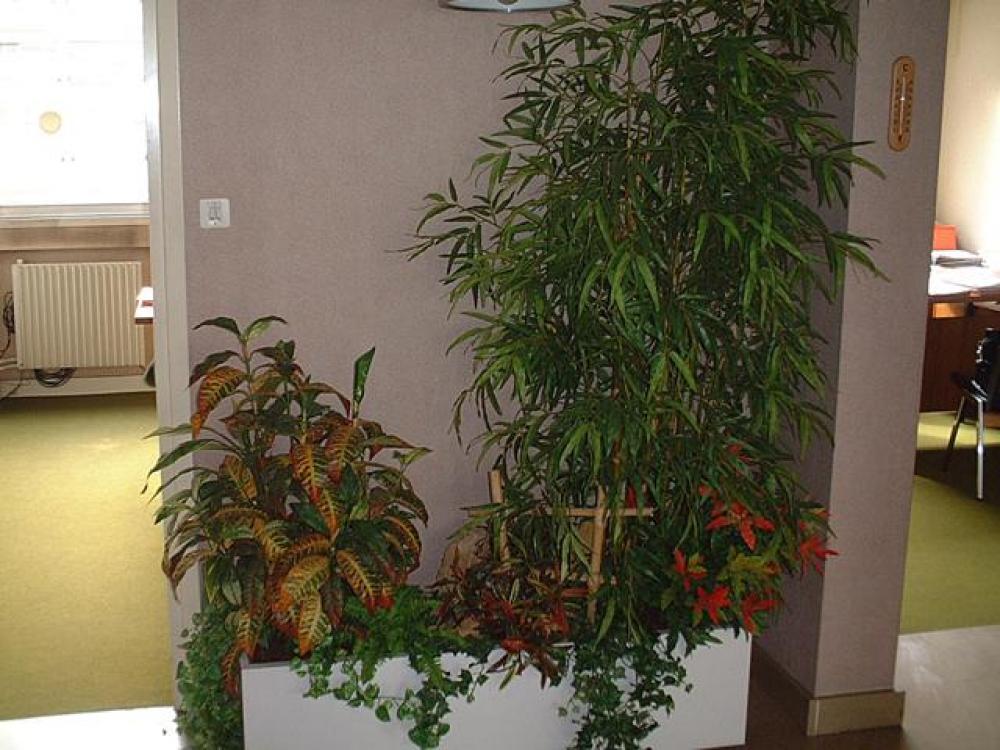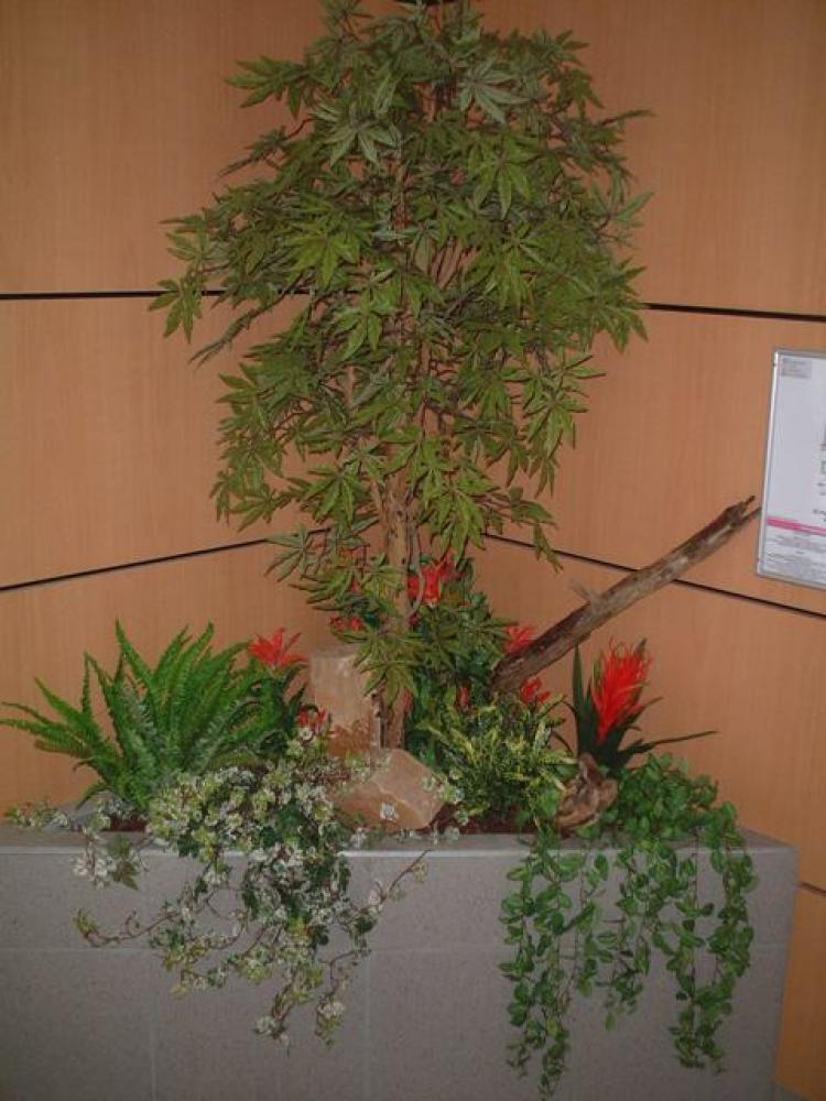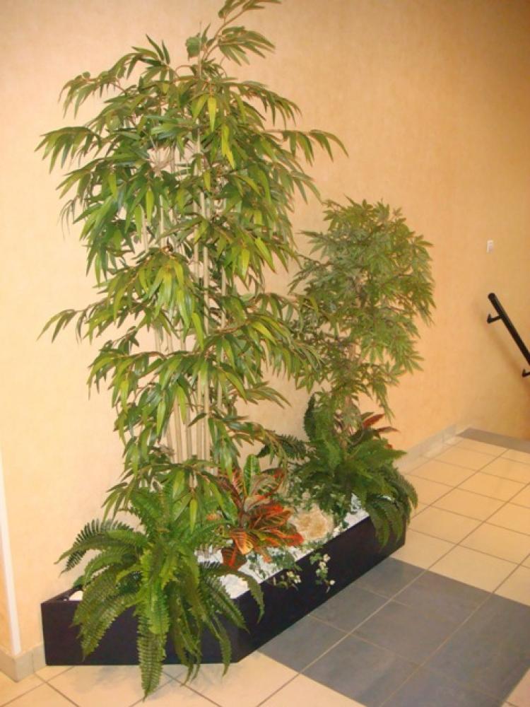 composition du bac : 1 Bambou vert 210 cm ( arbre semi-naturel ), 1 Erable artificiel 150 cm( arbre semi-naturel ), 2 Fougères ( plantes artificielles ), 4 Plantes Petits Modèles artificielles, 3 Plantes chutes - DIVERS AMENAGEMENT HALL D'ENTREE PLANTE ARTIFICIELLE 2