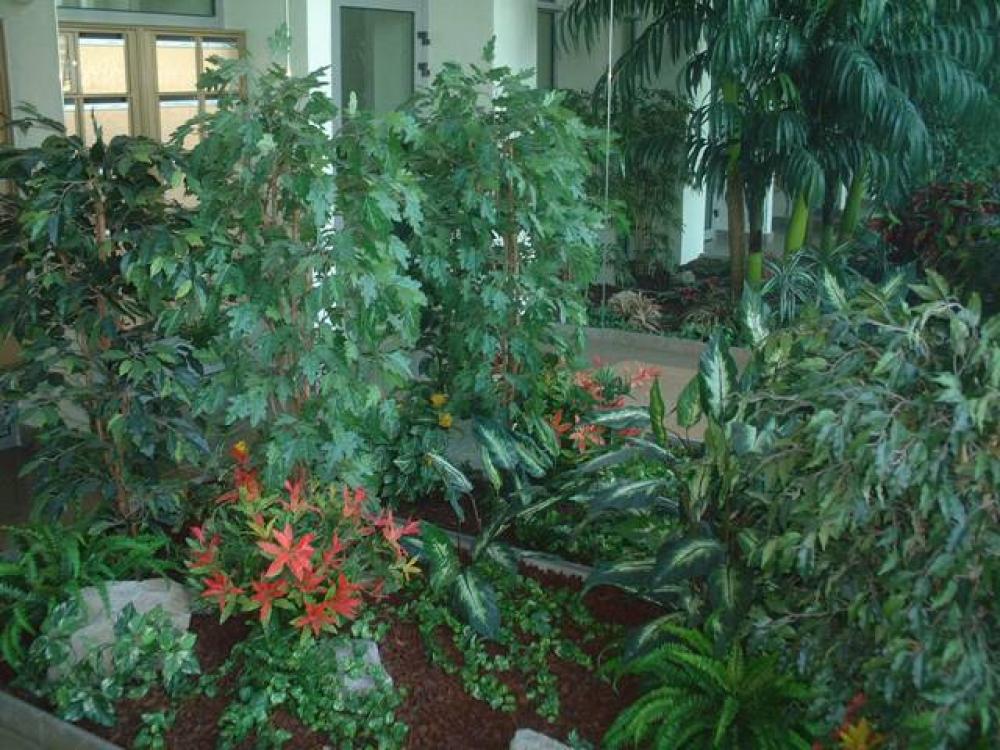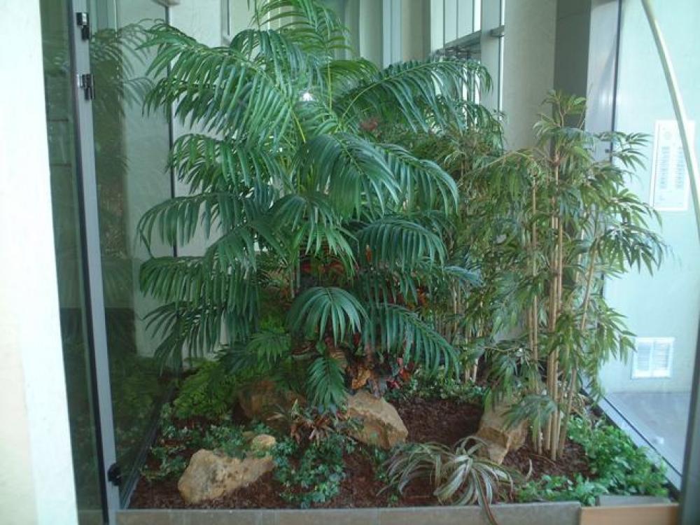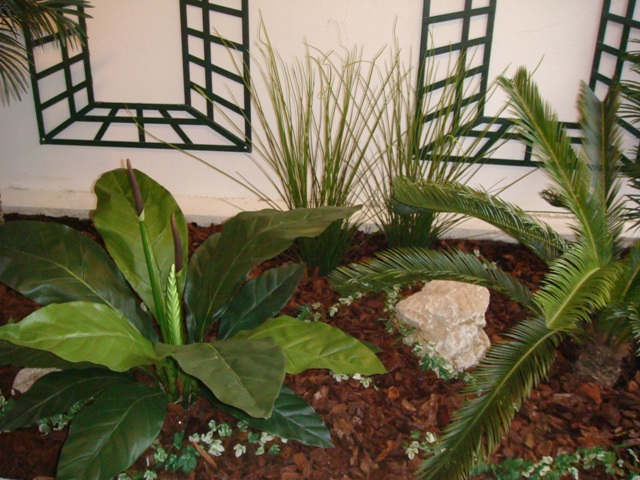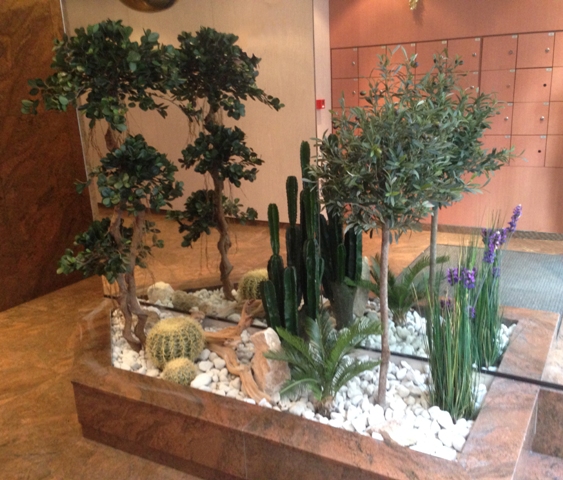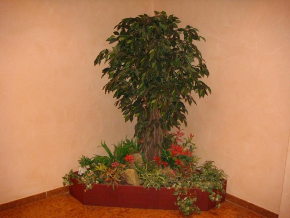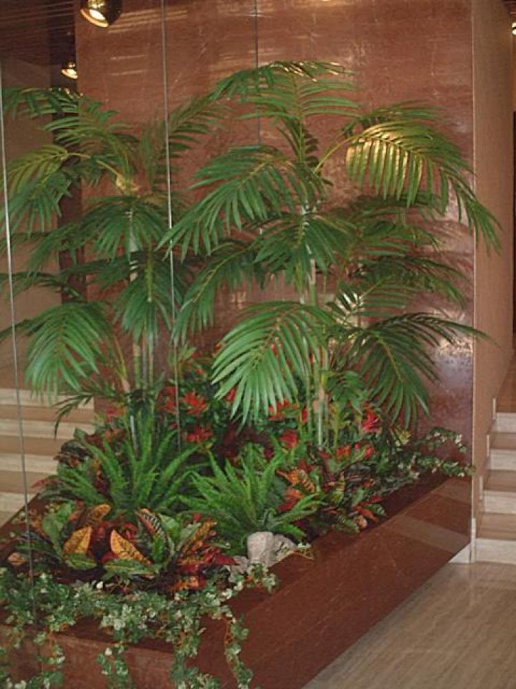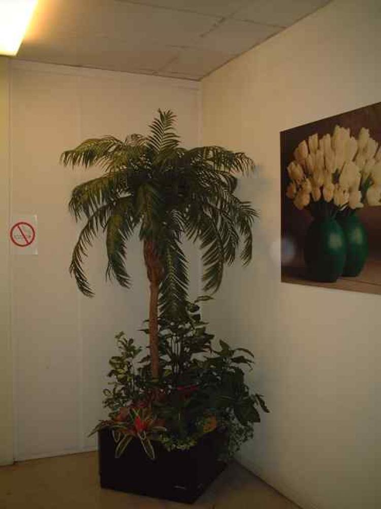 composition du bac : 1 Bambou vert 210 cm ( arbre semi-naturel ), 1 Erable artificiel 150 cm( arbre semi-naturel ), 2 Fougères ( plantes artificielles ), 4 Plantes Petits Modèles artificielles, 3 Plantes chutes - DIVERS AMENAGEMENT HALL D'ENTREE PLANTE ARTIFICIELLE 2