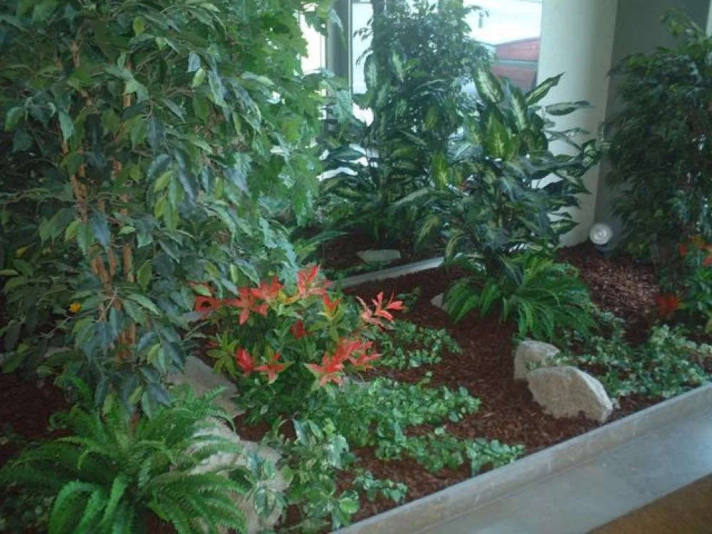 photo 4 : 1 Ficus artificiel liane de luxe 2m10 ( arbre semi naturel ) , 2 Fougères vert tendre( plantes artificielles ), 1 Plantes chutes type lierre, 2 Pieris ( plantes artificielles ), 5 Petites plantes vertes et colorées - DIVERS AMENAGEMENT HALL D'ENTREE PLANTE ARTIFICIELLE