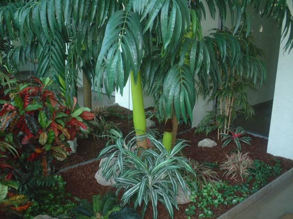 composition bac (photo 2): 1 Aréca géant( plante artificielle ), 2 Piéris( plantes artificielles ), 2 Fougères( plantes artificielles ), 3 crotons( plantes artificielles ), 2 plantes chutes