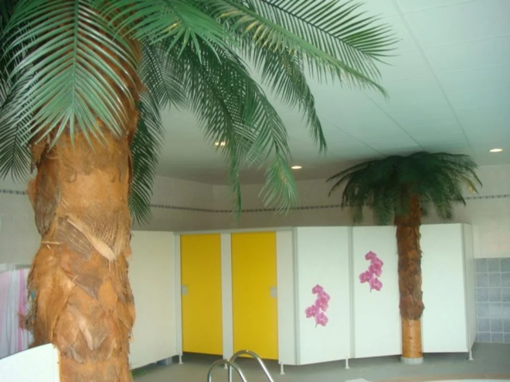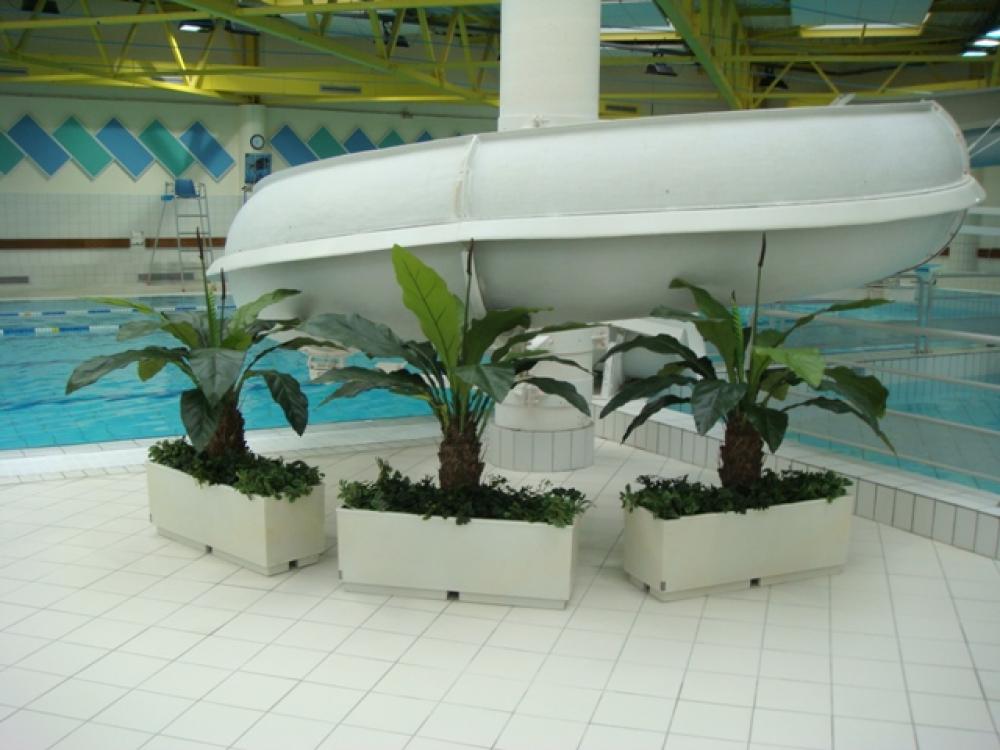 Plantes artificielles disposées pour éviter les chocs entre les baigneurs et les différentes infrastructures. Réalisation pour le centre nautique de la communauté de communes (vaugneray) sur la région de Lyon.