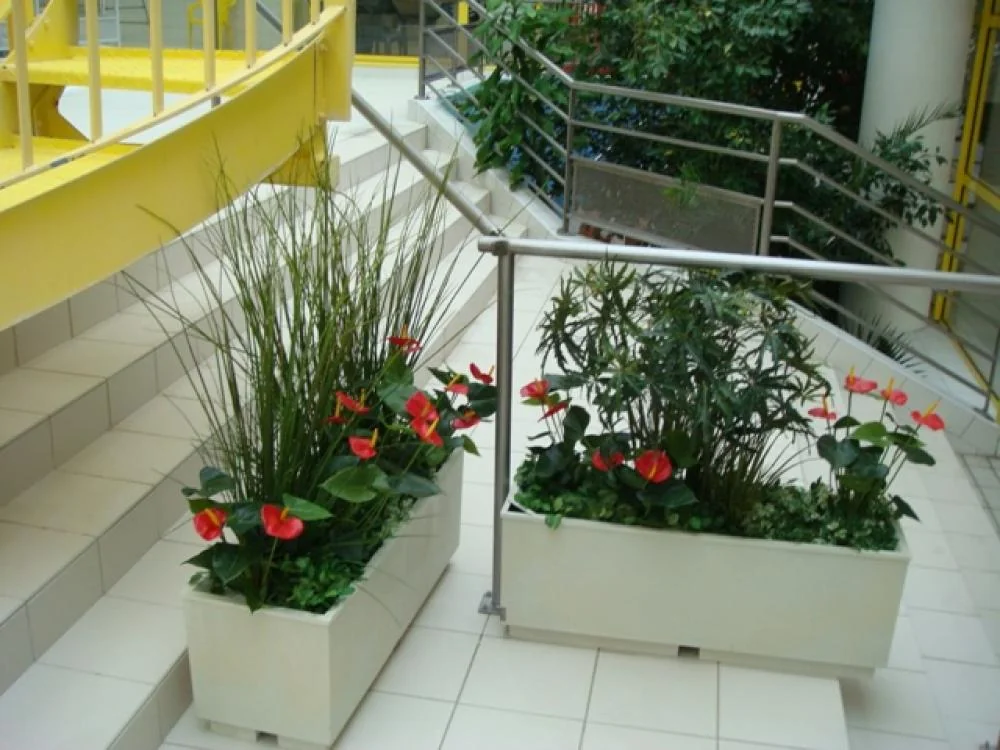 Bac main courante : 1 Aralia ( plantes artificielles ), 2 Anthurium rouge ( plantes artificielles ), 2 Plante fleurie bégonia rouge ( plantes artificielles ), 2 Herbe folle plastique ( plantes artificielles ), 2 Plante rampante - Hall d'entrée Lyon
