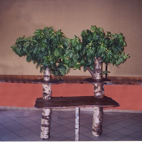 composition bac (3ème photo): Ficus tronc vigne 1m80 ( arbre semi-naturel ), 1 fougère vert clair ( plante artificielle ),2 plantes tombantes, 1 Schefflera ( plante artificielle ) ,1 Dieffen ( plante artificielle ), 3 Yucca ( plantes artificielles )