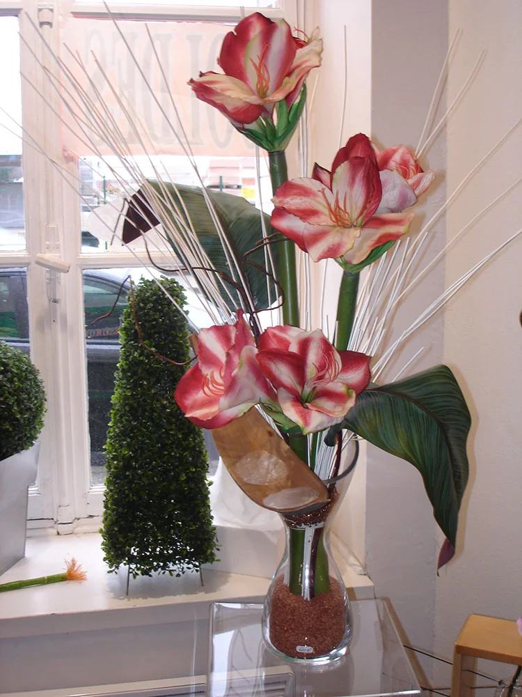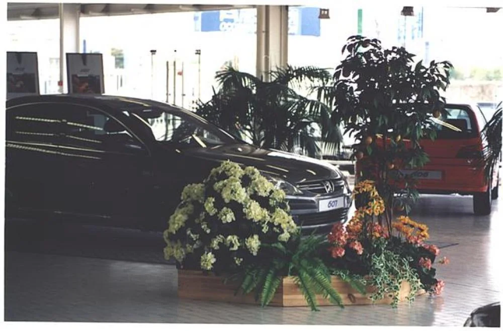 composition bac (4me photo):1 Bougainvillée 180cm ( arbre semi-naturel ), 1 Areca 120 cm ( plante artificielle ), 1Fougère vert tendre GM ( plantesartificielle ), 2 Azalées ( plantes artificielles ), 3 Chlorophytum ( plantes artificielles ), 2 Plantes vertes rampantes ( plantes artificielles )