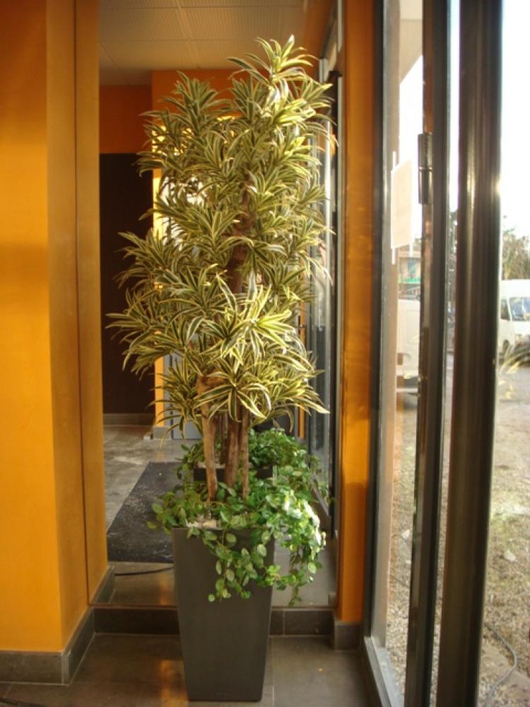 composition bac (photo 4): Dracaena reflexa vert/blanc 1m80( arbre semi-naturel ), Plante chute - Cantine scolaire
