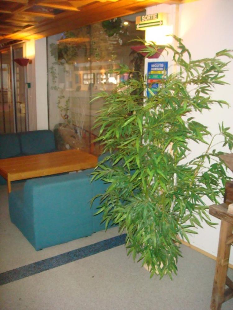 composition bac (5me photo):1 Bambou new 180cm ( arbre semi-naturel), 1 Fougère vert tendre GM ( plantesartificielle ), Ficus vert/crème 180 cm, 1 Fougère vert tendre GM, 1 plante chute tradenscantia - DIVERS AMENAGEMENT HALL D'ENTREE