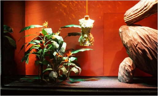 composition bac devant toboggan : 3 Anthurium jungle ( plantes artificielles ), 12 Plante rampante( plantes artificielles )