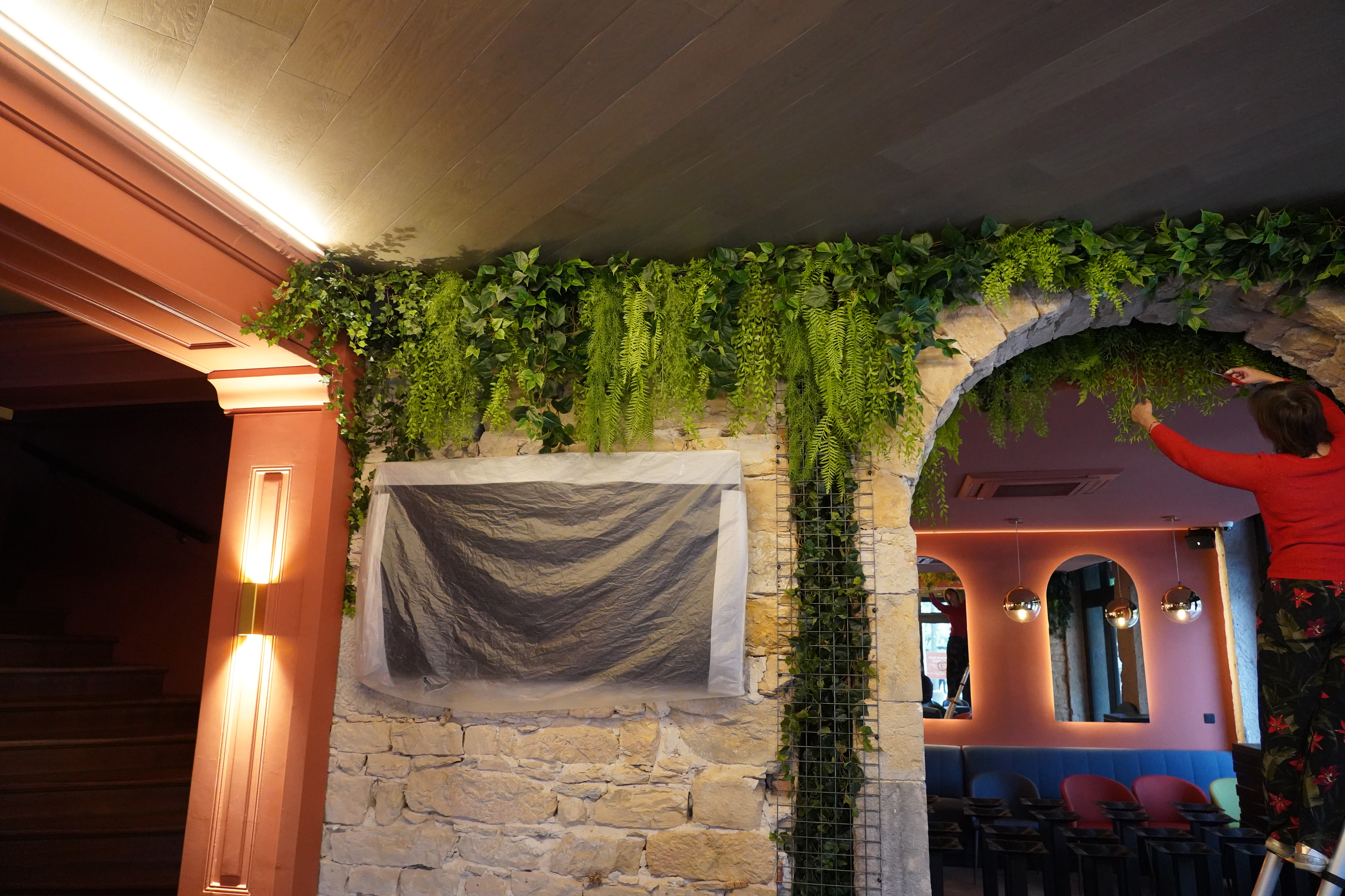 Venant à l’aide de familles souhaitant améliorer leur habitat, l’équipe a notamment fait appel à Reflets Nature, spécialiste de la vente en ligne de fleurs artificielles et d’arbres synthétiques. - Hall sur les quai de Saone ( Lyon ) plantes artificielles